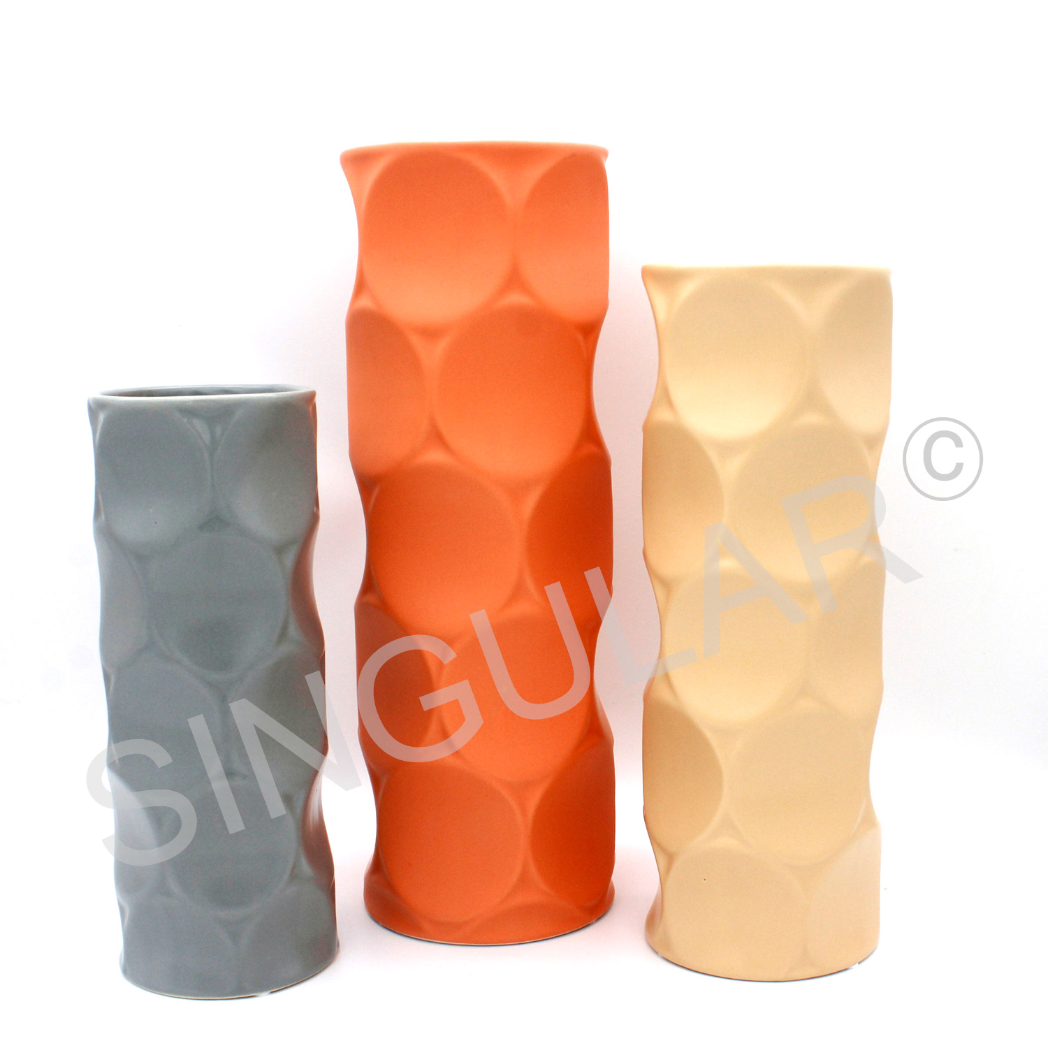 Tall round embossed pattern vase set