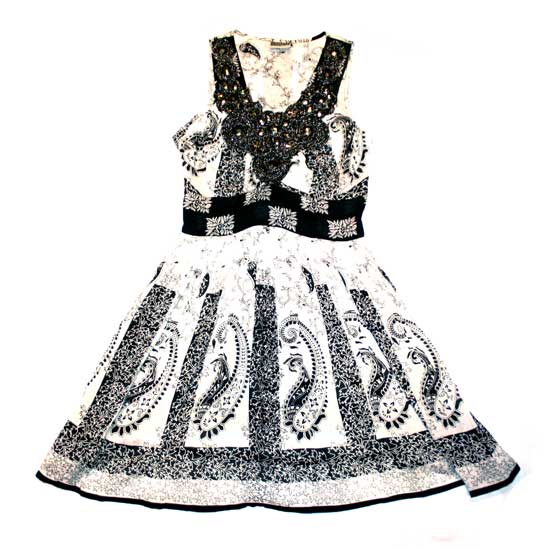 This beautiful tank dress features a vintage ethnic style, with paisley, flower and vine figures printed on the modern black and white complexion. The V-neck highlights dusky intertwining vines. This flared skirt offers a girly touch.