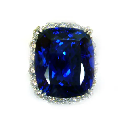 This finger ring is inlaid with a polished tanzanite stone in tempting dark blue. It is also crafted with a matching dazzling frame. This ring is an excellent one to project your grand taste.