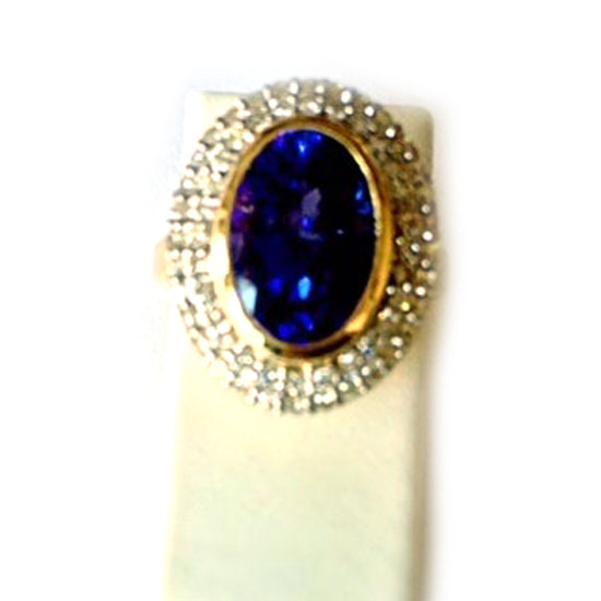 - Material: oval tanzanite, diamond and 18K yellow gold.