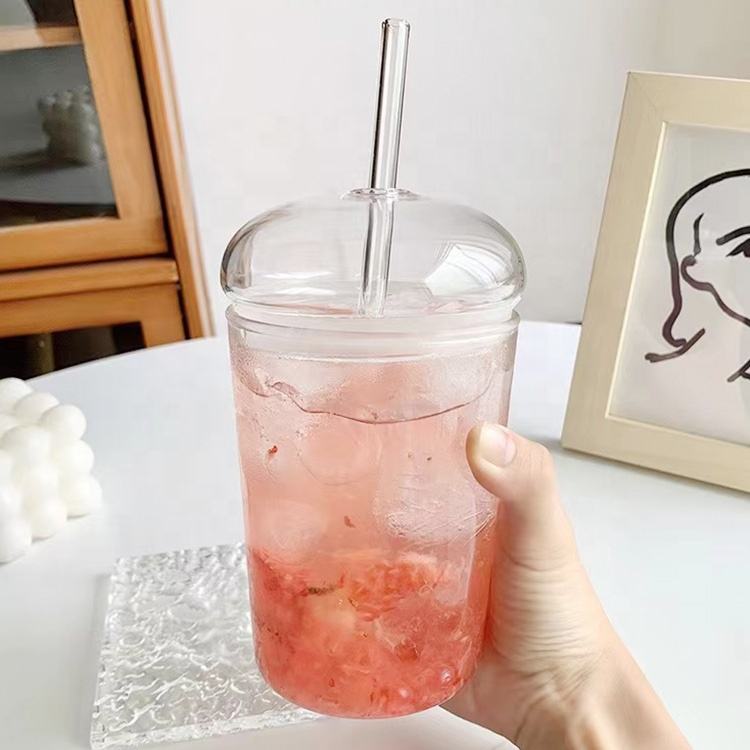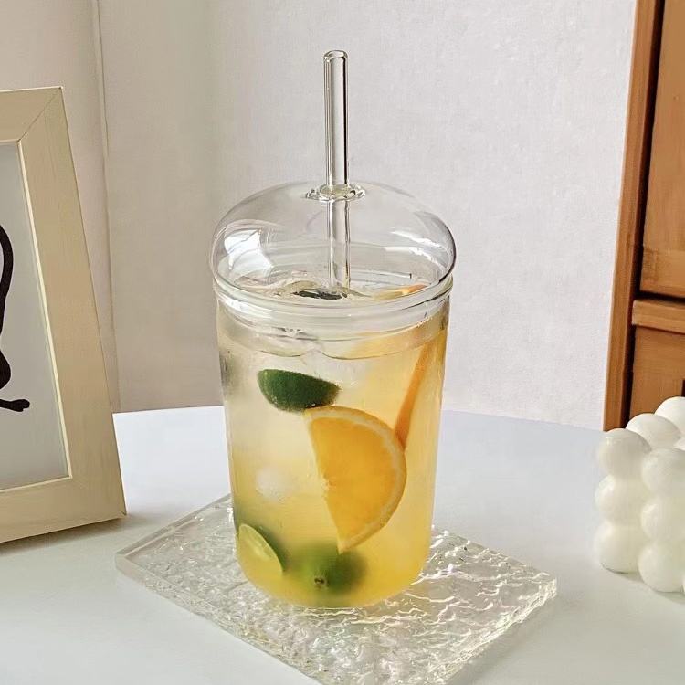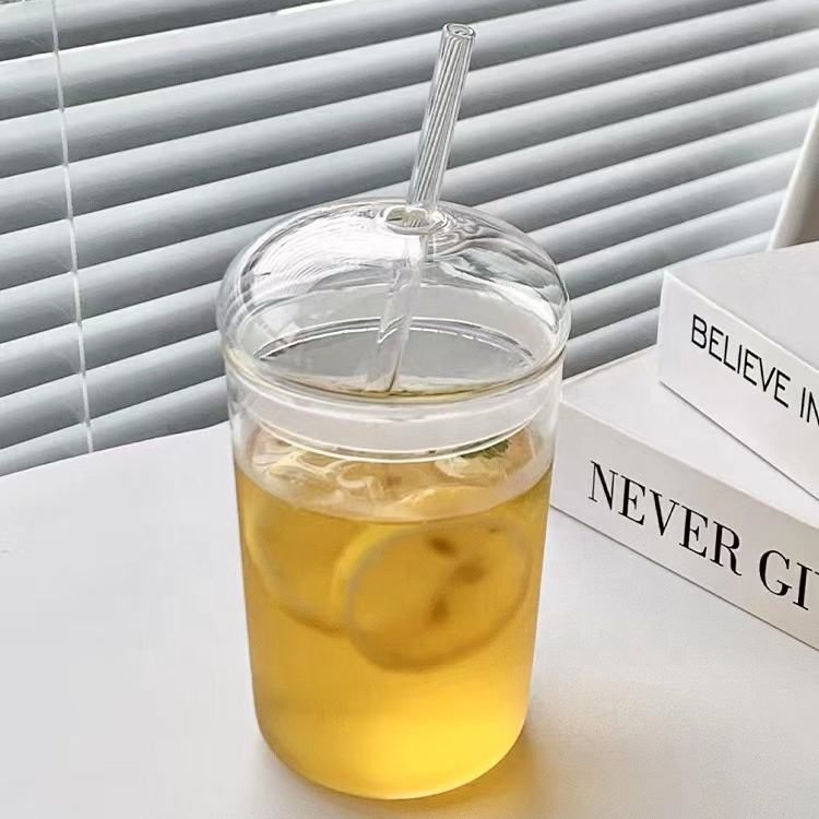 Customized Bubble Tea Borosilicate Glass Fruits Tea Reusable Clear Glass Tumbler With Straw