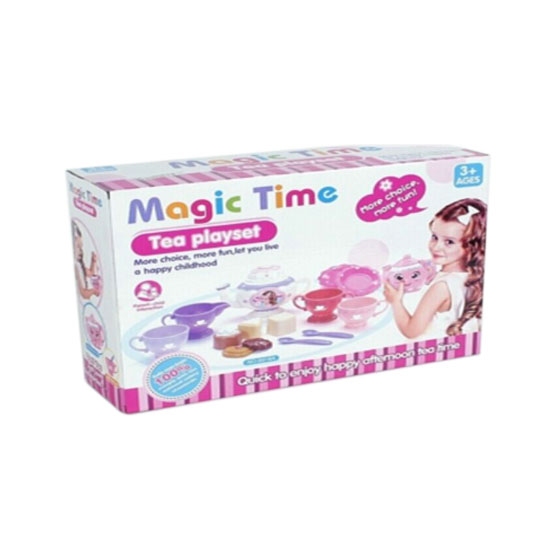 This complete tea playset consists of a teapot and multiple tea cups and saucers. Each piece is finely designed in a different color for a rich visual effect. Children can have lots of fun enjoying their own afternoon tea time.