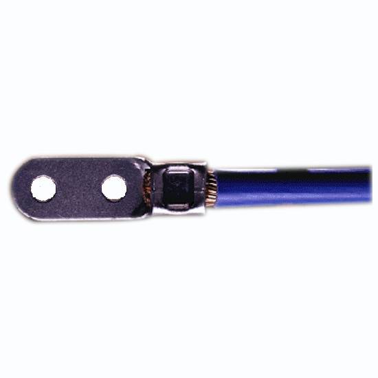 Featured is a non-insulated terminal connector. It is made of quality materials for long lasting durability. This two-ring terminal connector offers a perfect option for connecting your cables strongly