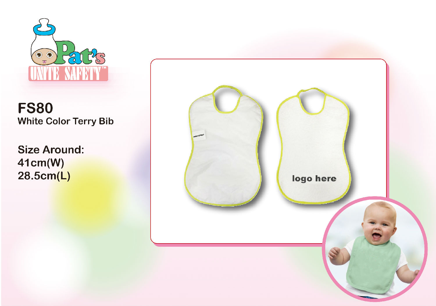 • Babies 100% cotton terry bib with peva backing.