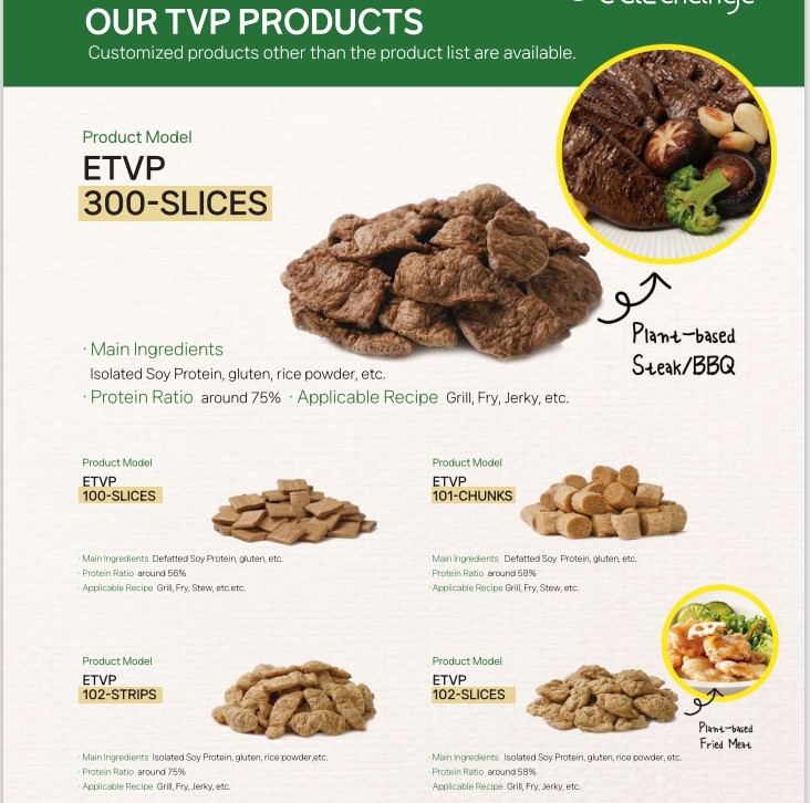 Ercohs self-develops and self manufactures TVP materials also known as Textured Vegetable Protein. Our TVP products have the textures and taste most similar to real meat through extrusion technology consisting of optimized time, temperature, and pressure.