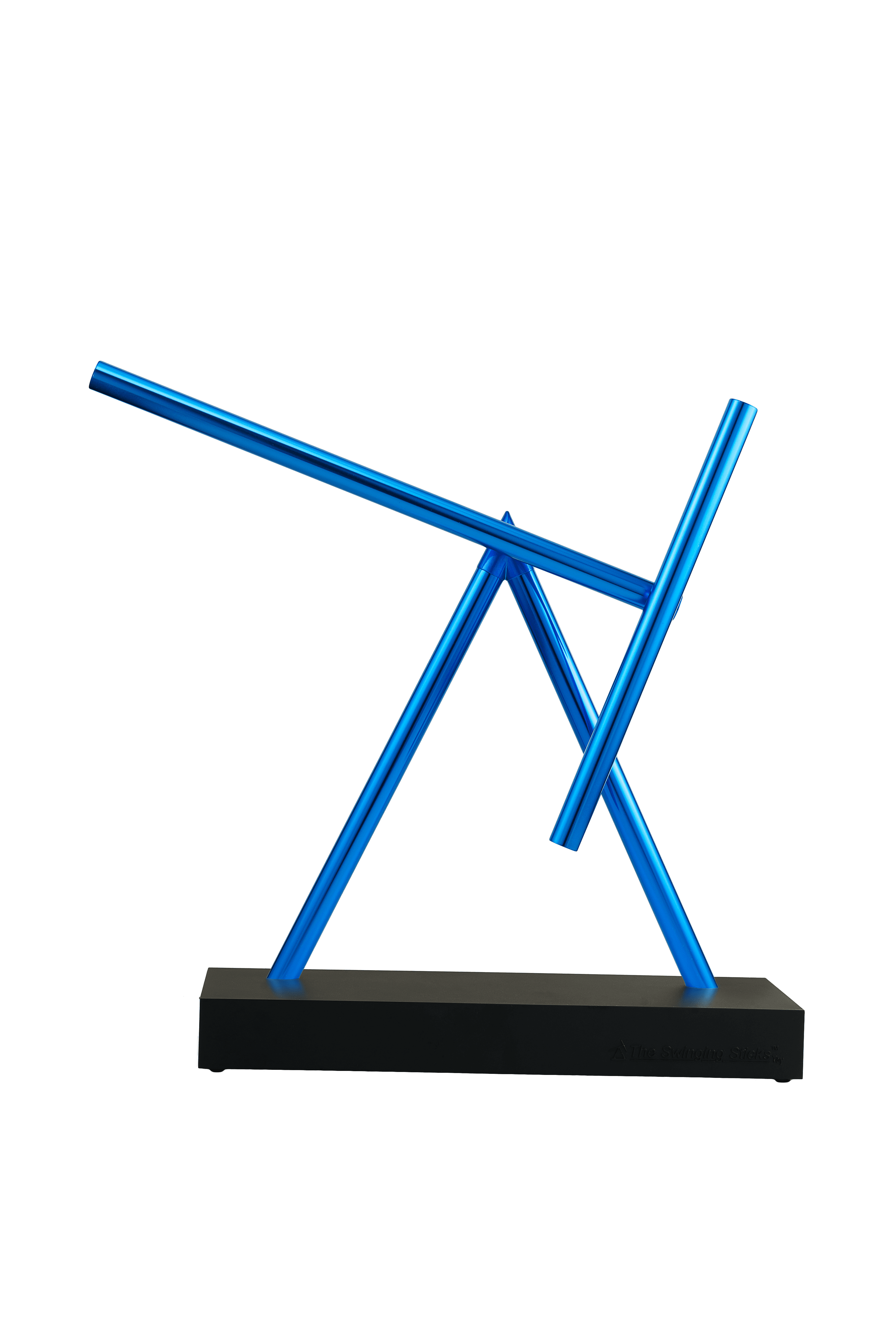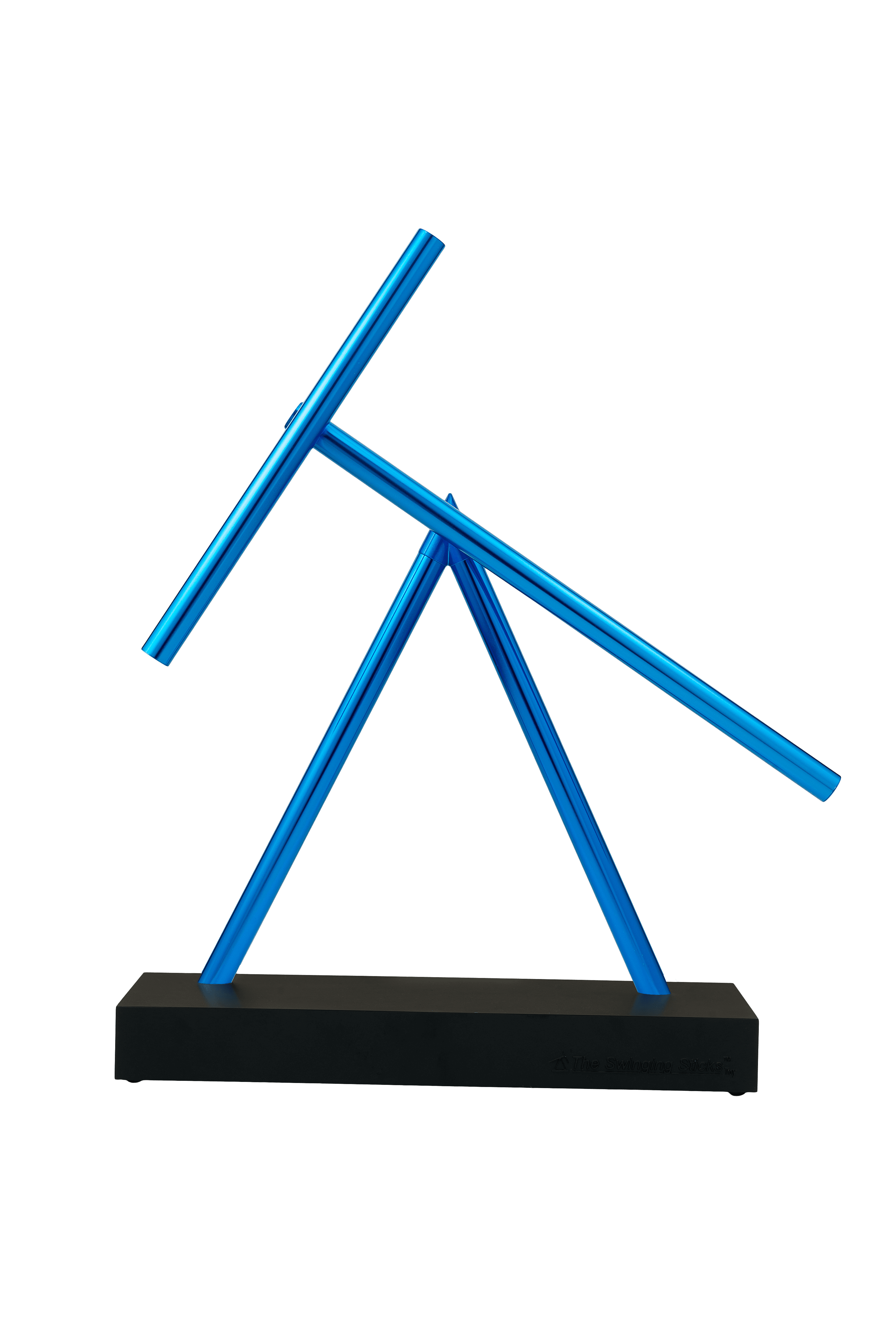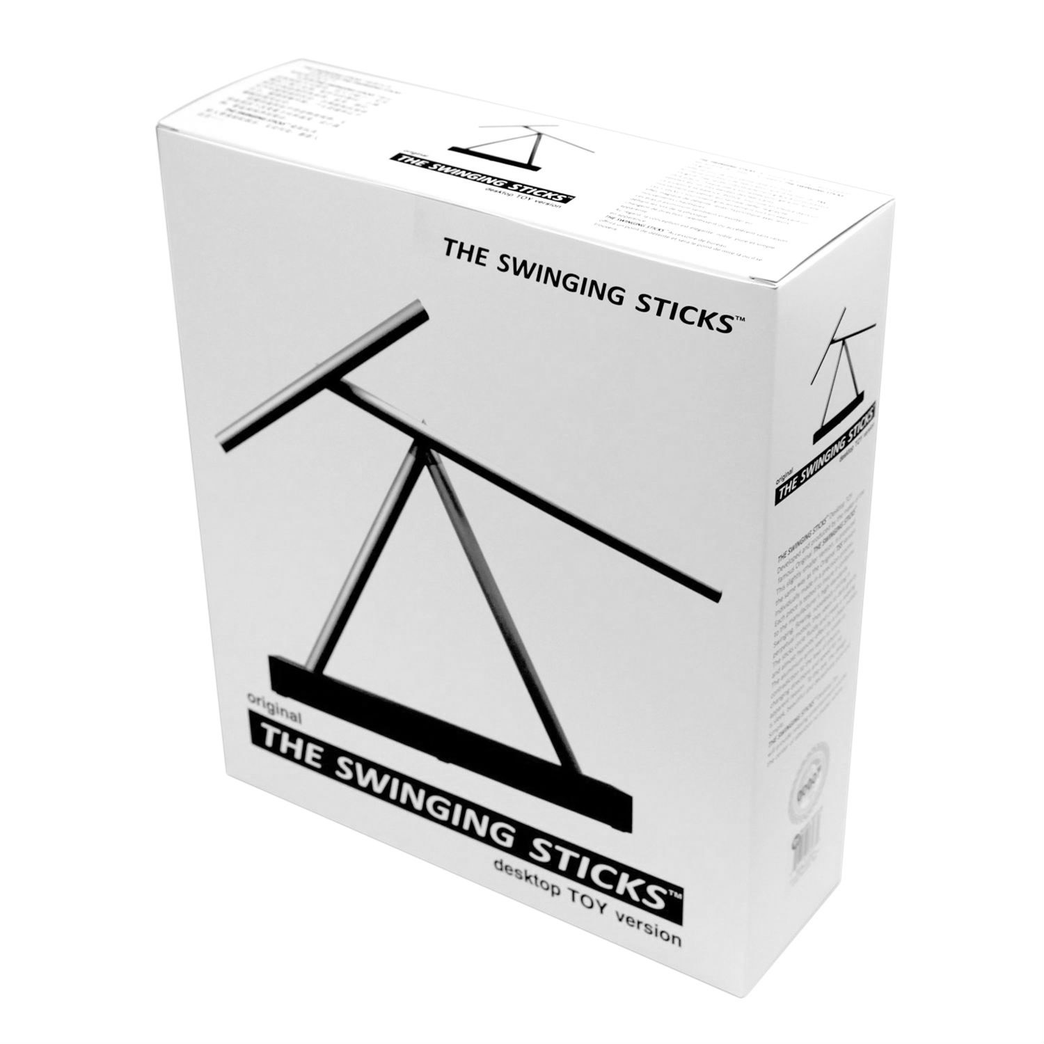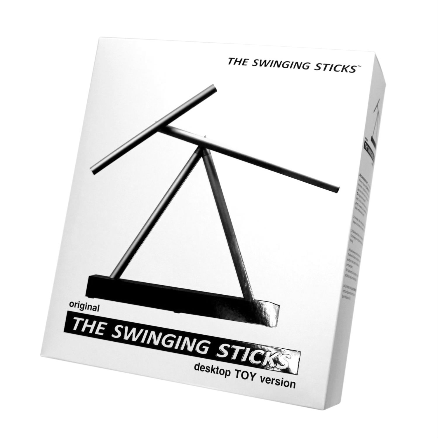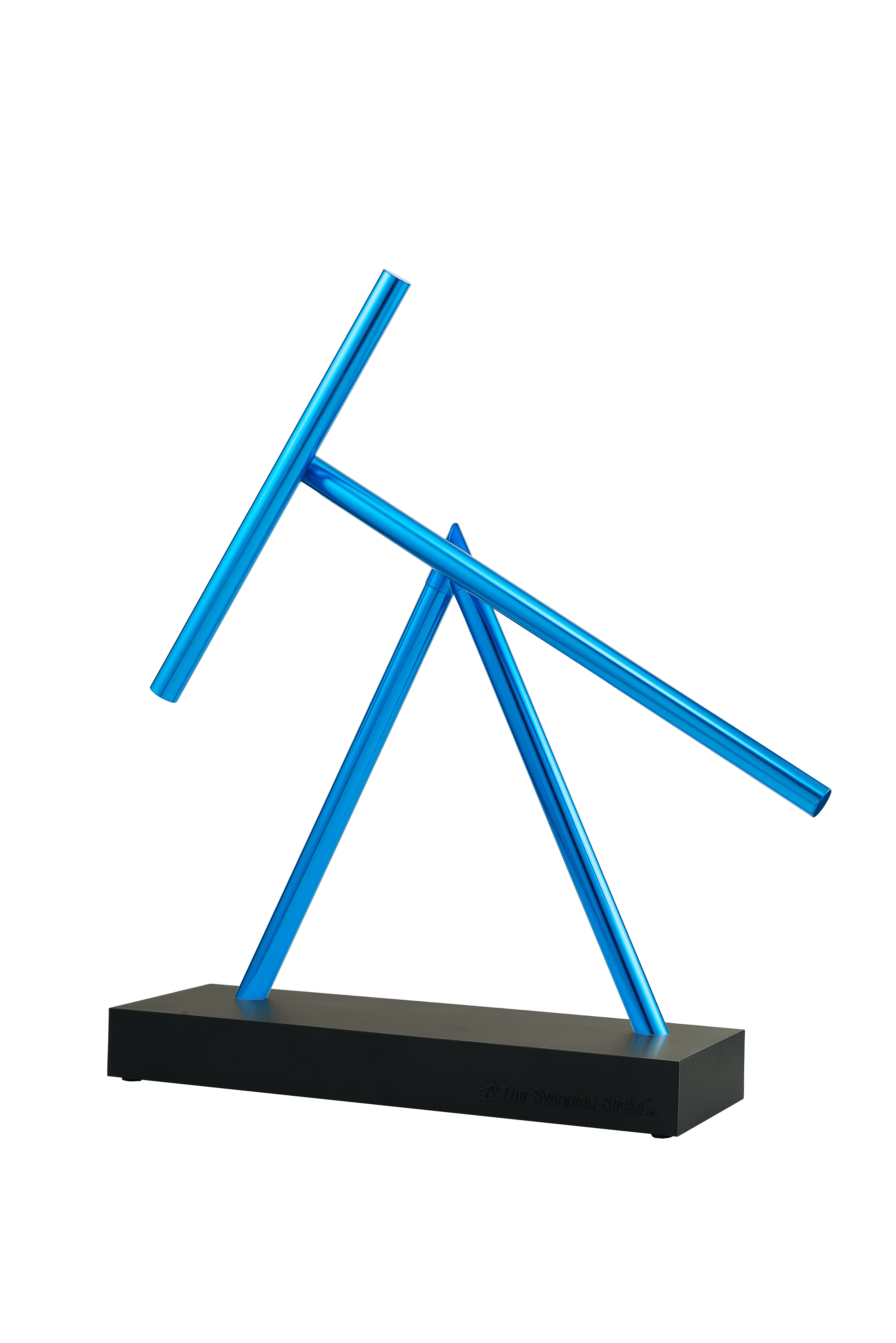 • The Swinging Sticks is a double pendulum kinetic energy perpetual motion desk sculpture famous for its style and sophistication. The aluminum arms appear to defy the laws of physics and gravity as they continue to turn through the air.