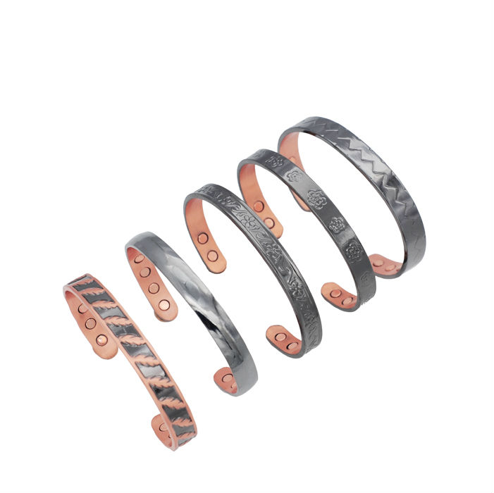This bracelet is the perfect, stylish solution to pain management. Designed with pure copper and rare earth magnets, it combines powerful, natural, noninvasive healing and practicality effortlessly. Created with style and beauty in mind, this therapeutic bracelet will look gorgeous combined with all other accessories, in a stack of bangles, or as a standout, statement piece. The copper design makes for an on-trend, rose gold look.