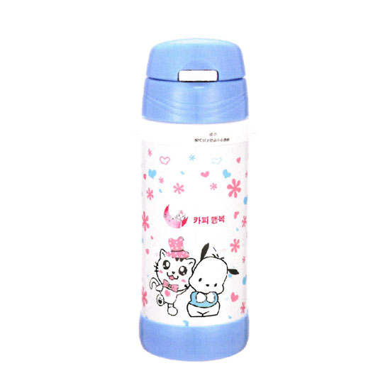 This is a thermal strap cup in white and blue. The vivid cartoon patterns add a touch of cuteness to this design. This lovely cup is a great choice for your beloved child.