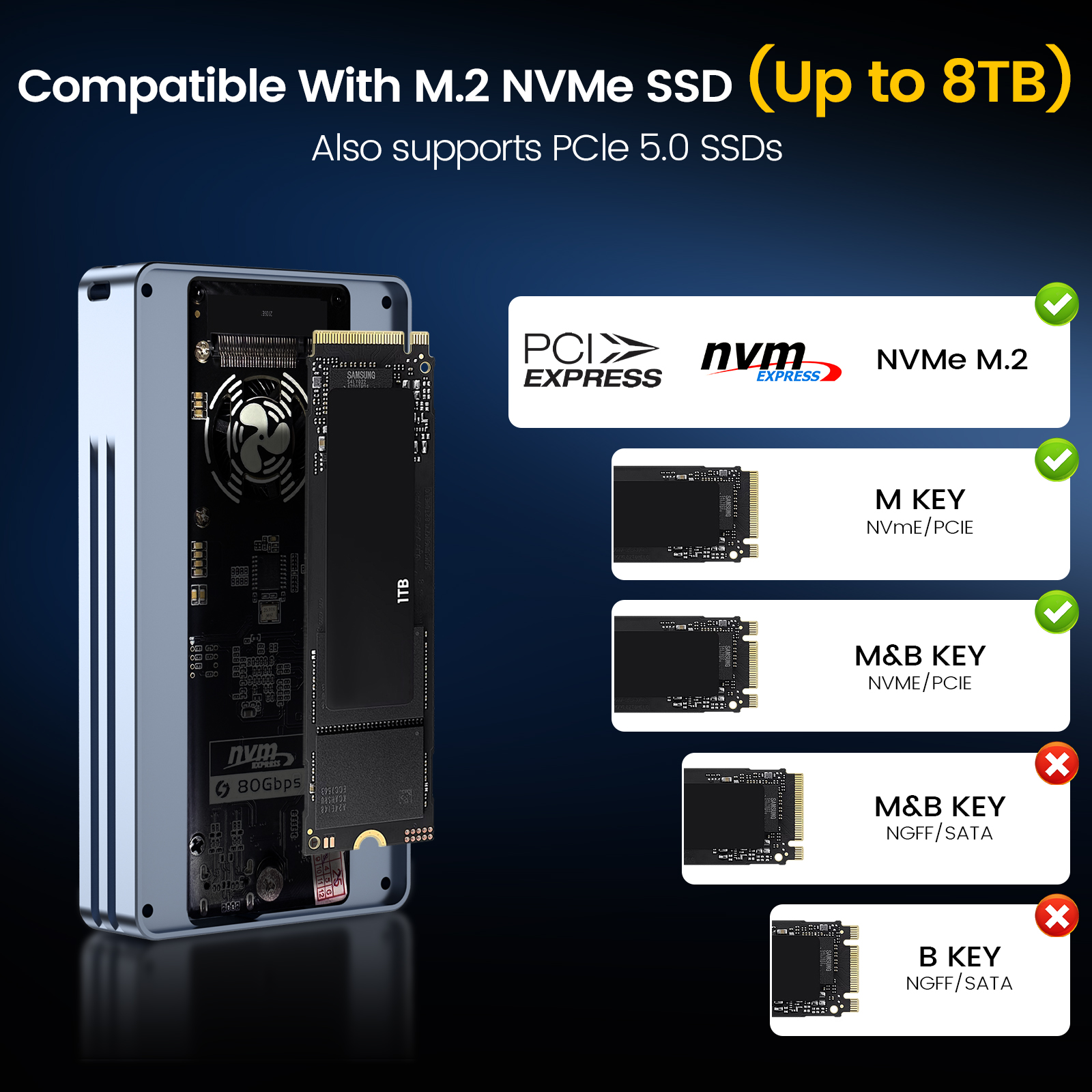 SSD Compatibility | M.2 NVMe M & B+M Key SSD |