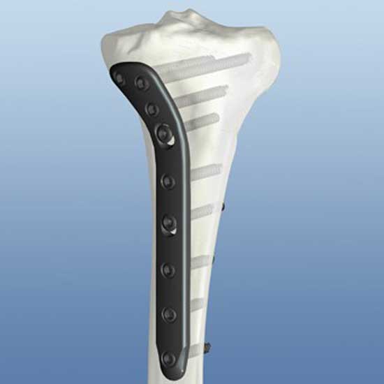 The highlighted tibia plateau condyle LCP plate features meticulous construction. It is designed with 5 to 14 holes for precise application. This tibia plateau condyle LCP plate is ideal for use with orthopedic doctors.