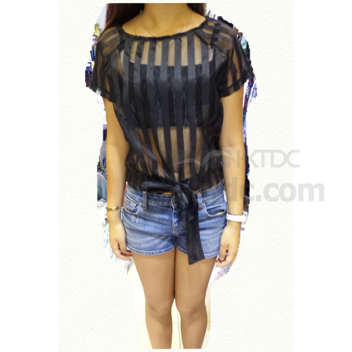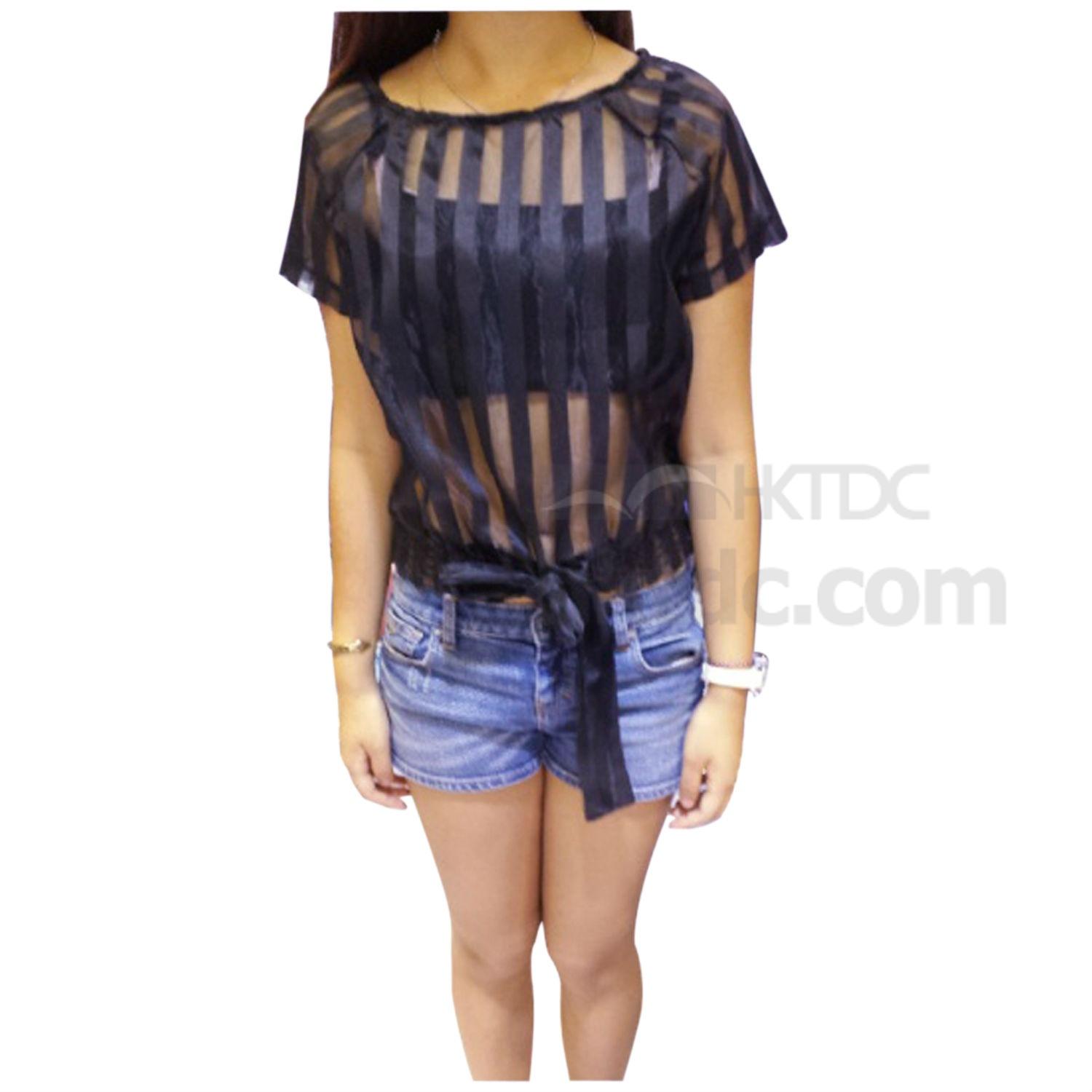 This piece is crafted from organza, a sheer fabric with a slightly stiff feel that creates instant polish, and it has a topstitched pattern of stripes that keeps things a little bit playful.