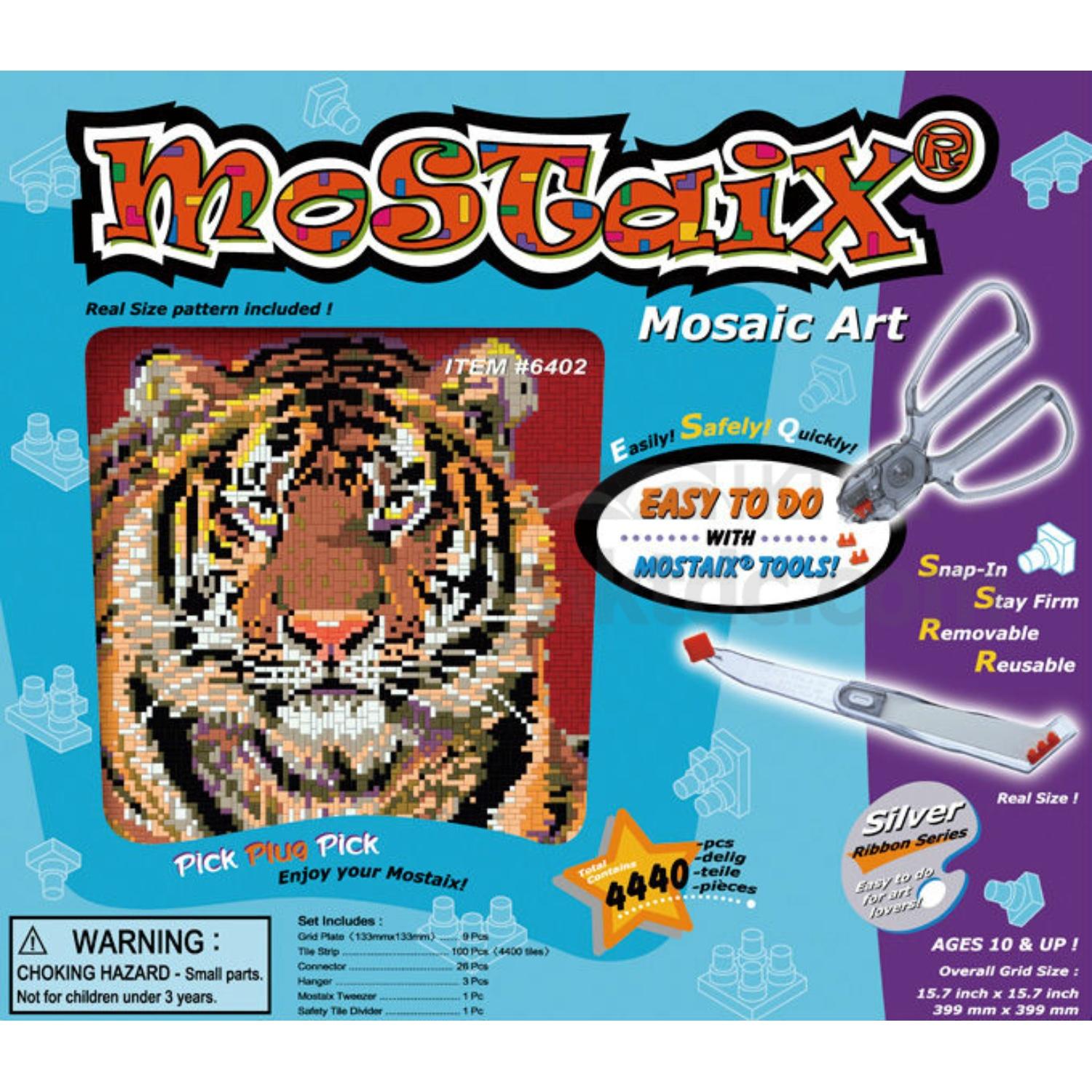 Each kit consists of 4,400 plastic tiles, 9 plastic girds, 36 connectors, 3 hangers, 1 Mostaix tweezer, 1 Mostaix safety tile divider, and a real-size Instruction.