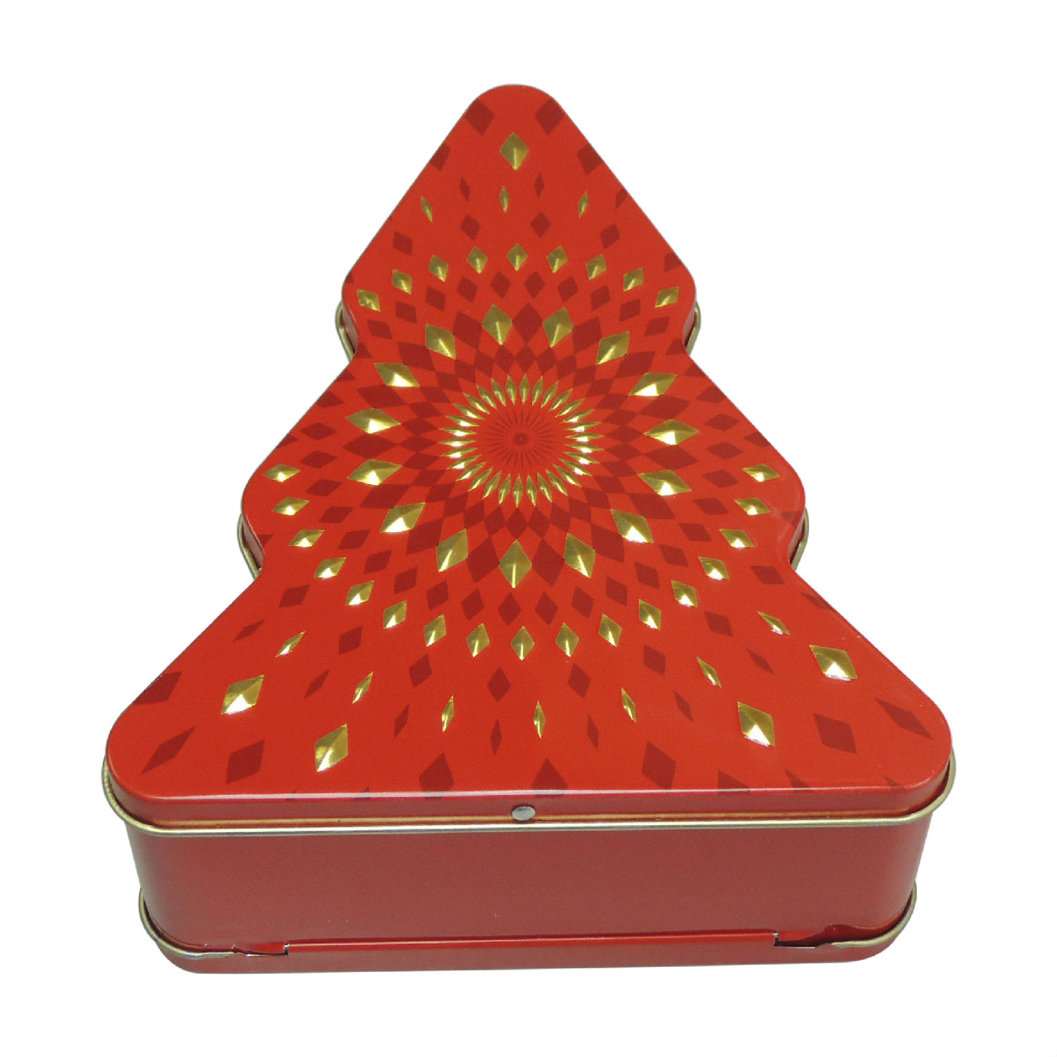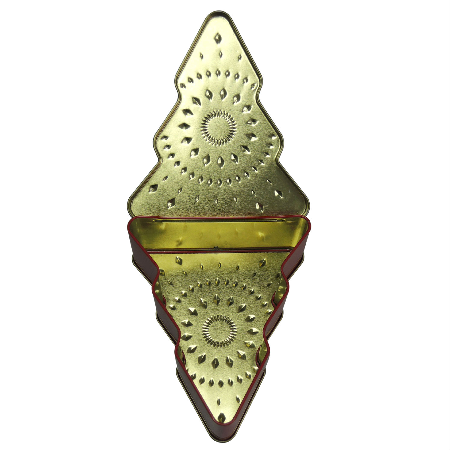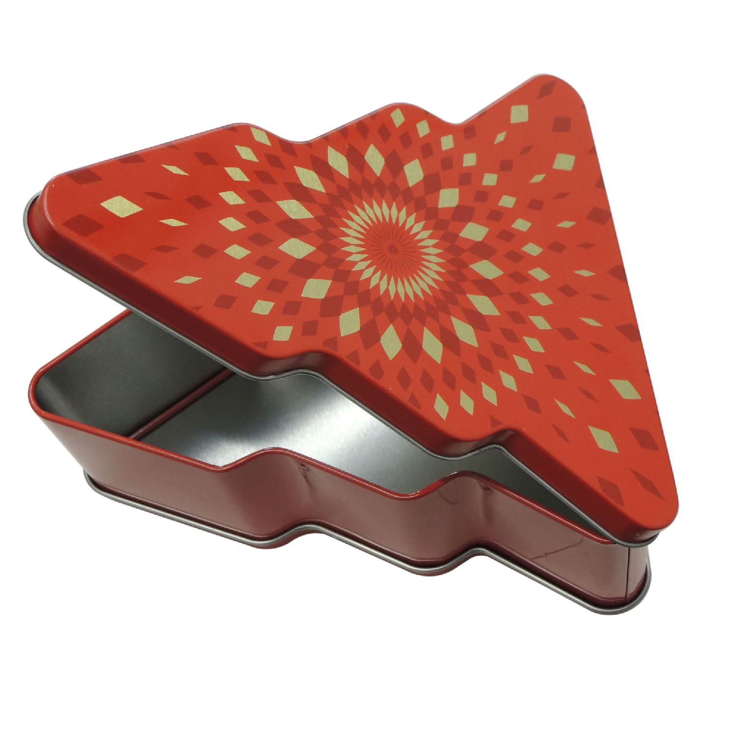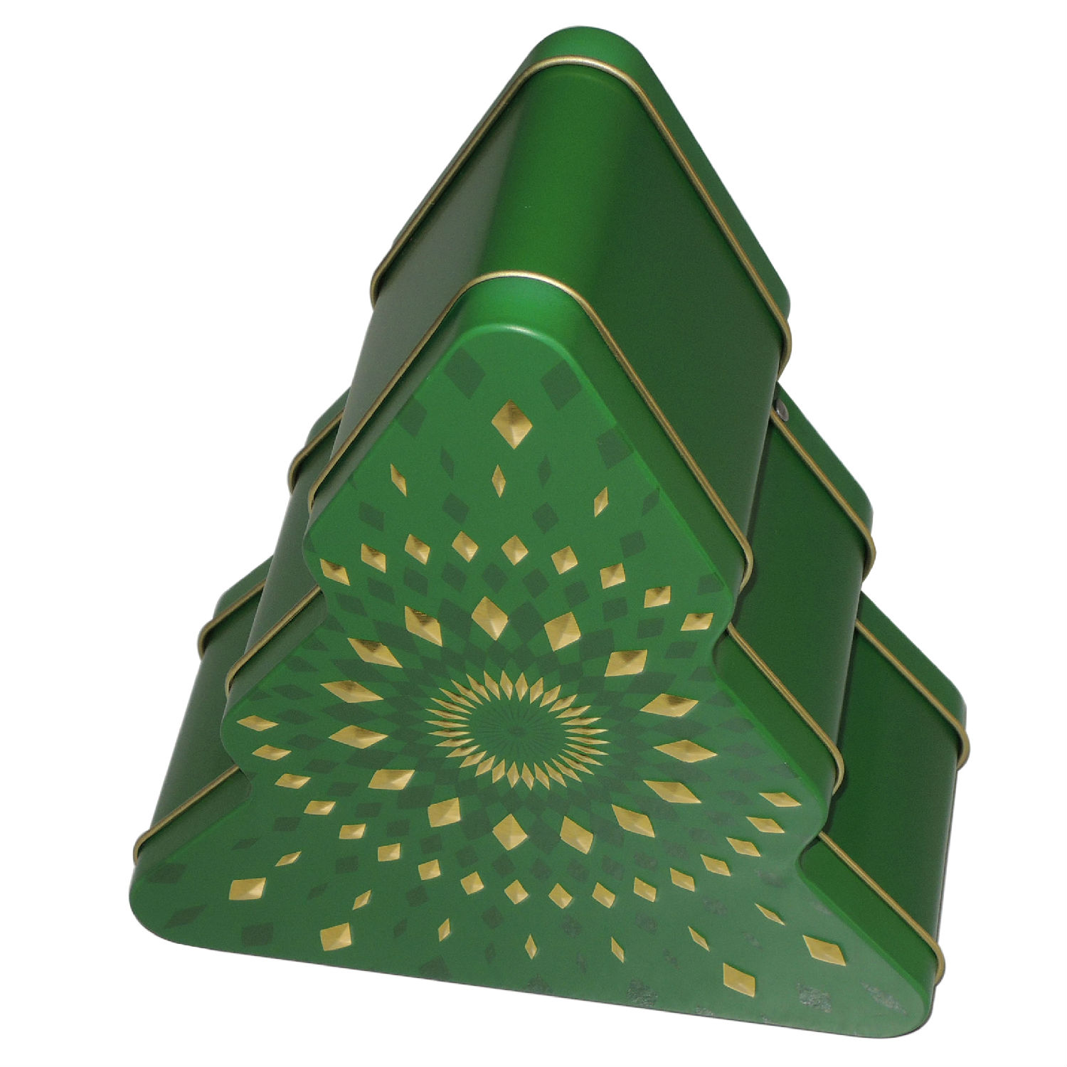 Celebrate festive occasions with this Christmas tree shaped tin can. It has a spacious interior for storage and is excellent for storing gifts, cookies, chocolates, etc. This tin can is covered with a lid and is printed with colorful patterns on the lid for a beautiful look.