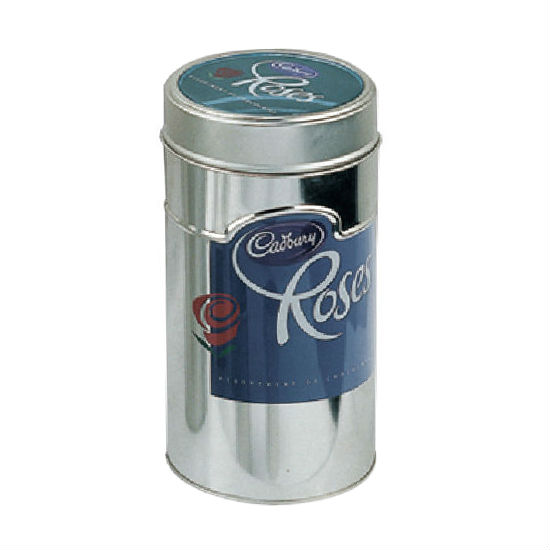 Featured here is a tin can for packaging use. It comes in a cylindrical shape and has a lid for covering. Brand name and images of the products can be printed on the exterior for promotional use.