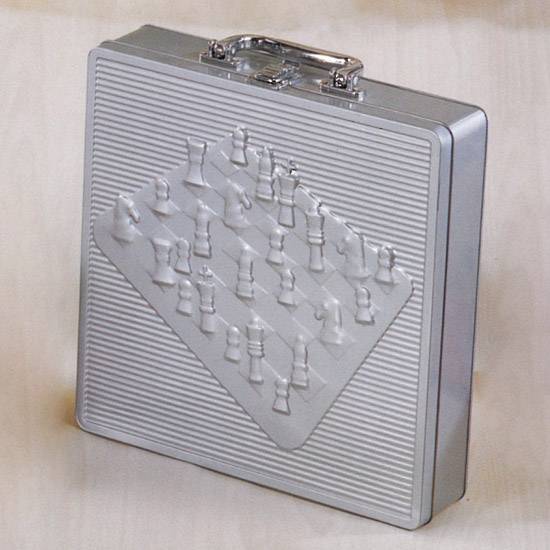 This lunch box comes with a silvery surface carved with interesting chess board patterns for an artsy, smart appeal. It is equipped with a handle for convenient carrying and a latch for safe storage. The box is perfect for students and businessmen to bring their lunches.