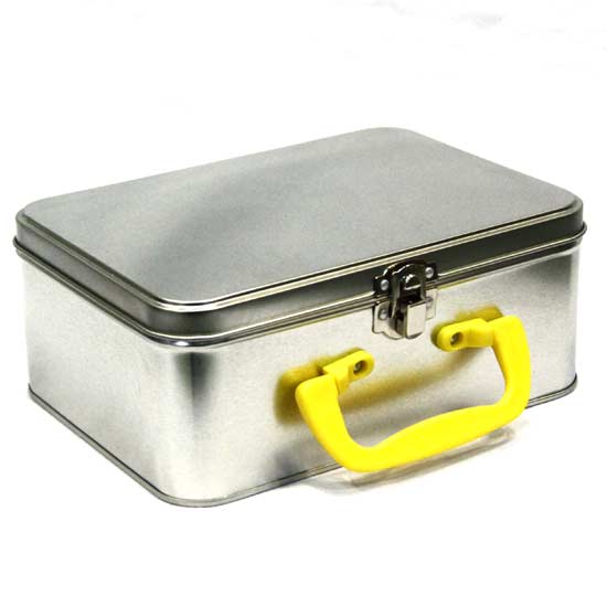 This tin lunch box comes in an exquisite and simple design. It features an easy-to-operate lock, offering secure storage of food. The plastic handle in refreshing yellow makes carrying convenient.