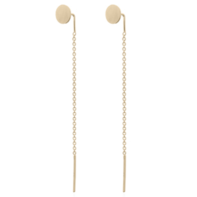 Tiny Circle Disc Yellow Gold Chain Threader Earrings In Silver 925
