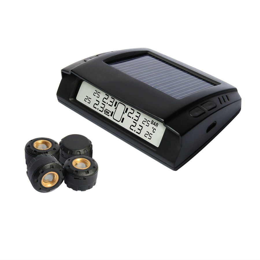 Easy installation and reliable Clear and large display Solar power supported Build in with rechargeable lithium battery Automatic waking up when vehicle start in motion Automatic backlight on/off for daytime or nighttime High pressure and low pressure setting by user High temperature setting by user Visual and audible alerts for high/low pressure, high temperature and fast leakage Pressure unit selectable: PSI, BAR Able to read up to 5 tires Automatic pair sensor with tyre location, no need to input sensor ID