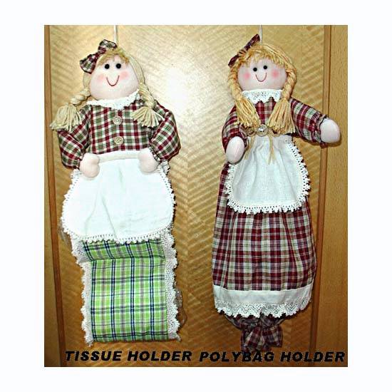 This cute tissue holder boasts an adorable doll-like design with plaid patterns all over. It holds tissue rolls under the red long dress. Add this beautiful yet functional tissue holder to your home.