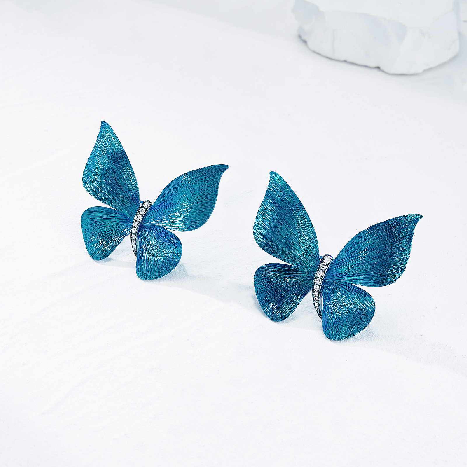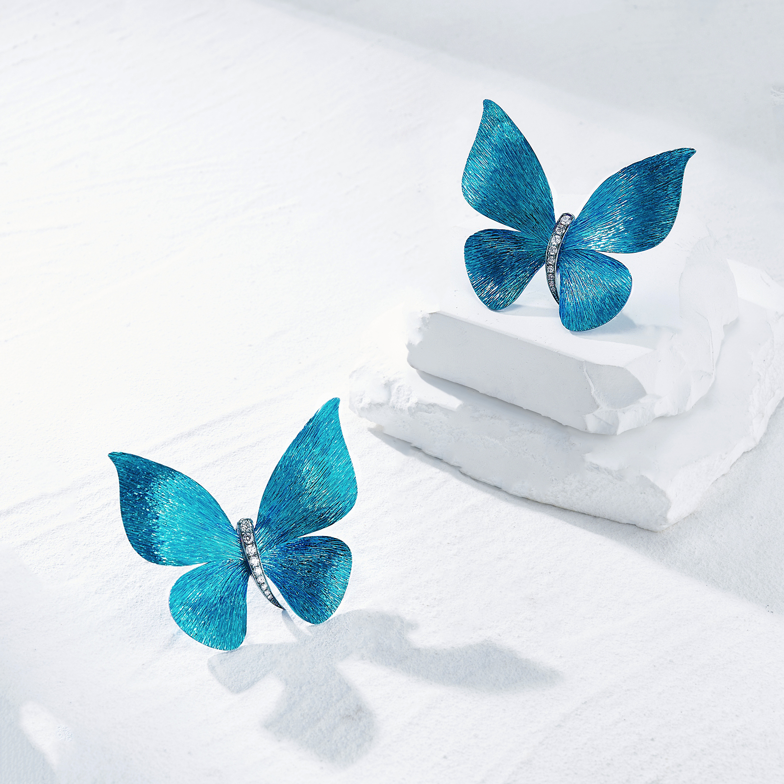 With titanium blue as the rhyme and butterfly as the soul, we condense the vivid beauty of nature into masterful creations. The unique cold and sharp texture of titanium metal, crafted by skilled artisans with delicate brushing techniques, resembles the texture accumulated over time, endowing each pattern with the rhythm of life.