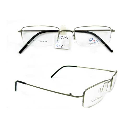 Featured is a pair of half-rim titanium spectacles. The modest design with rounded rectangular lenses appeals to many consumers. These minimalist, lightweight spectacles emphasizes practicality and comfort.
