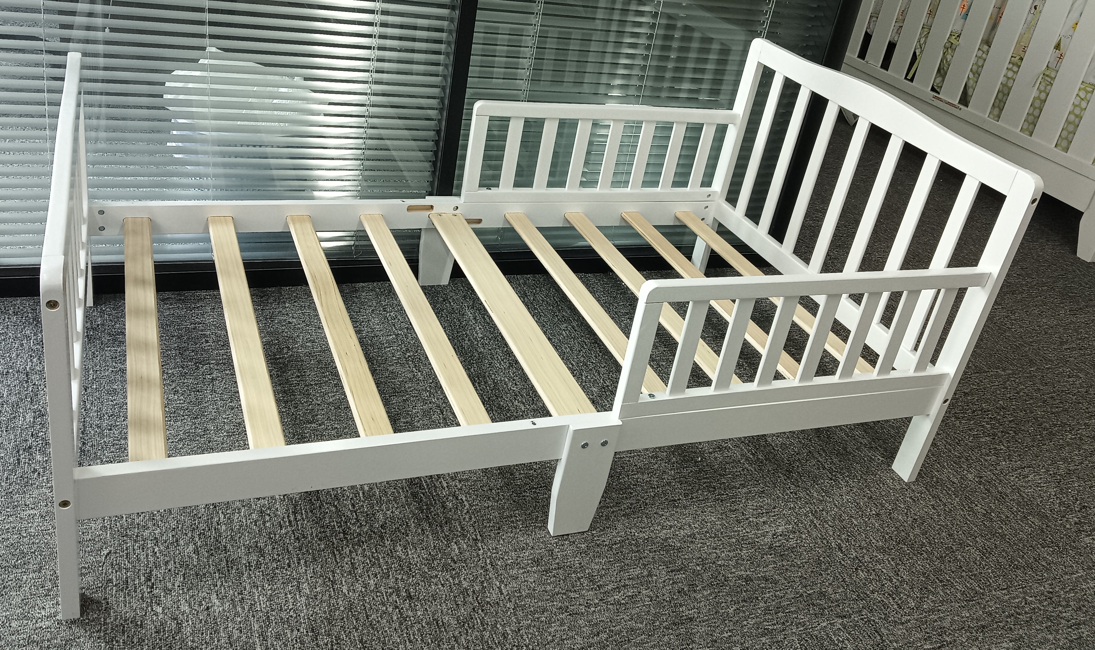 The Kindercasa Classic Toddler Bed is designed especially for toddlers as they transition from a crib to a bed. Sits low to the floor for ease in getting in and out of bed and reinforced for stability with a centre leg. Now this bed did't include a mattress, Standard mattress is sold separately.