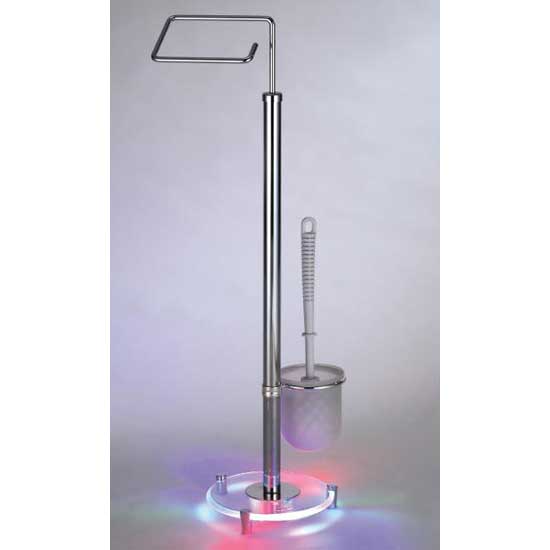 Featured here is a toilet brush set that comes with a toilet brush holder and a paper roll holder. The set is characterized by an LED system at the base, changing colors at a 5-second interval. The stand is made of chromed metal for a stylish look and durability.