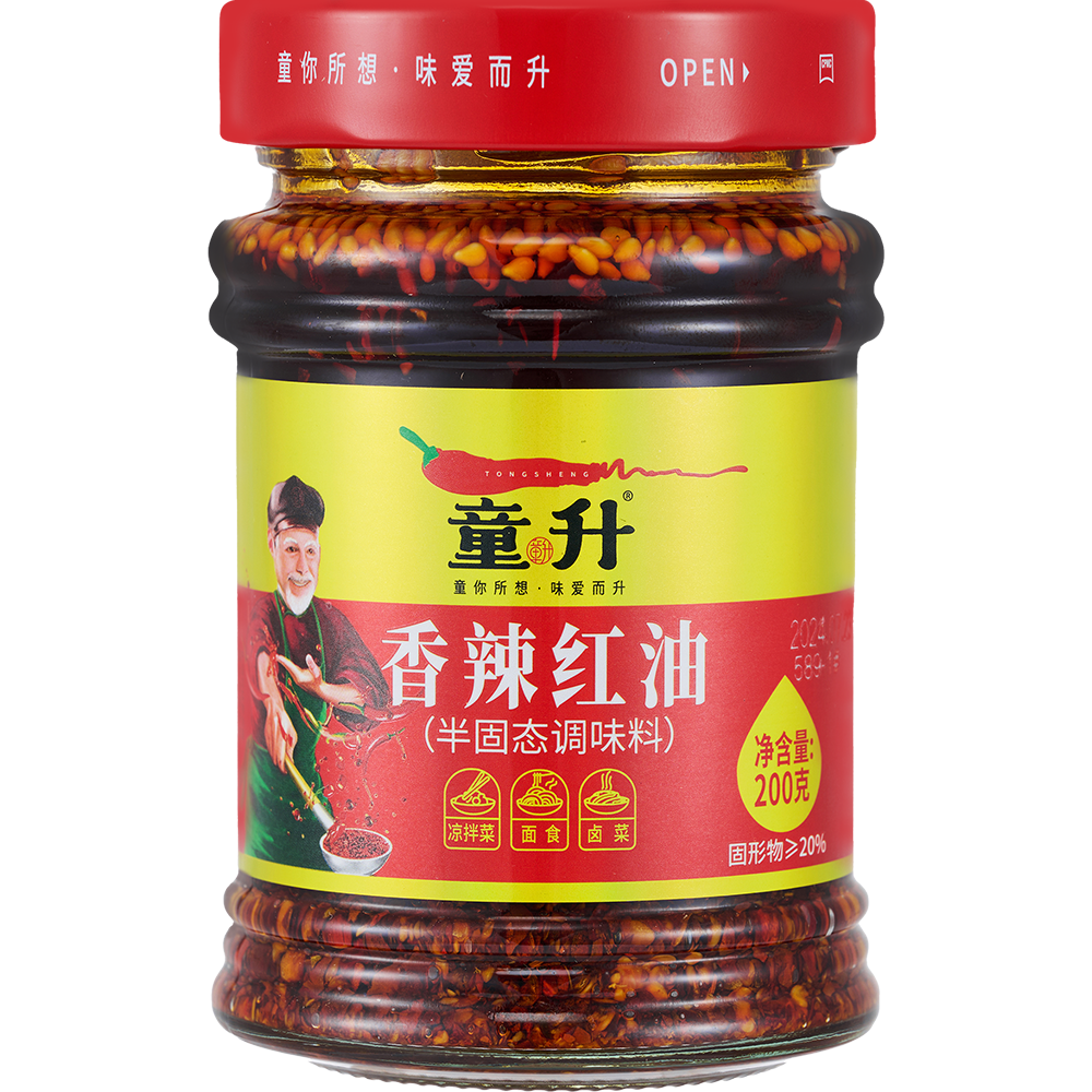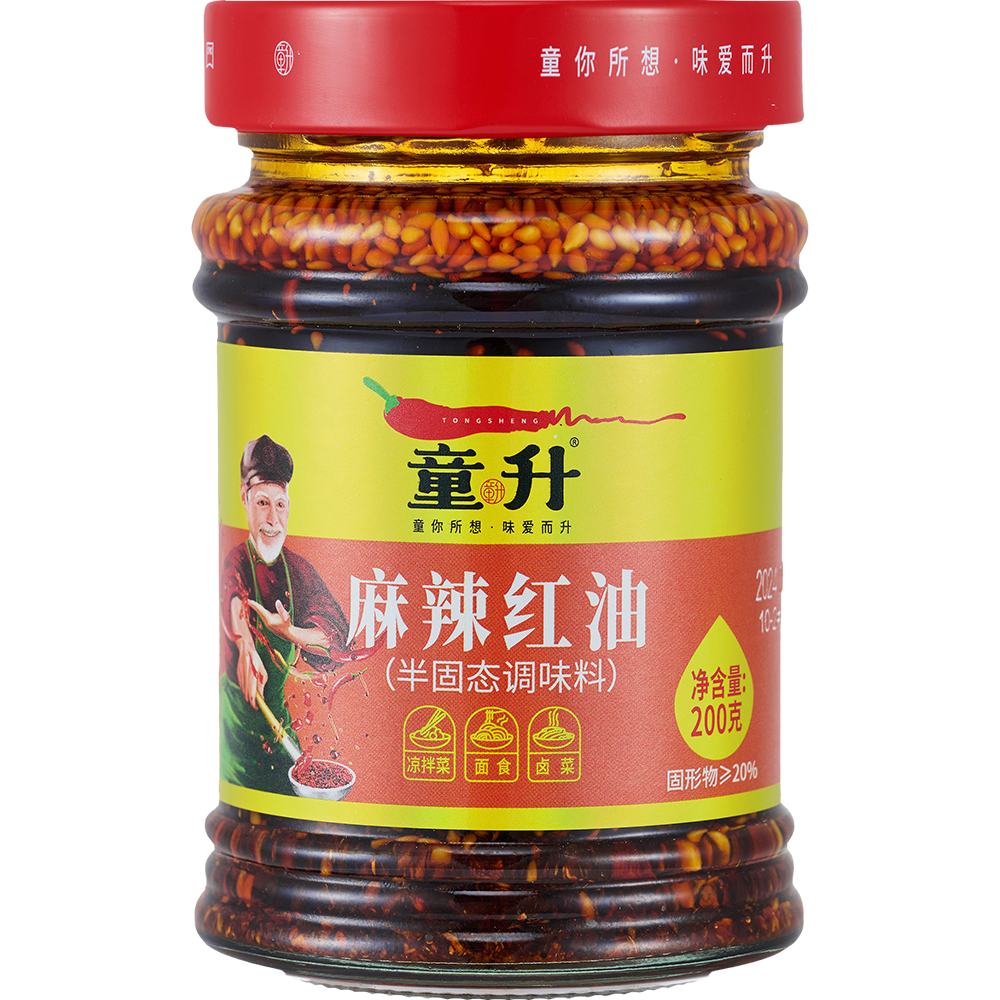 Tong Sheng Zijing Sichuan Spicy Red Oil 200g Oil-Poured Chili Sauce Spicy with Residue Cold Noodle Dish Chili Oil Seasoning
