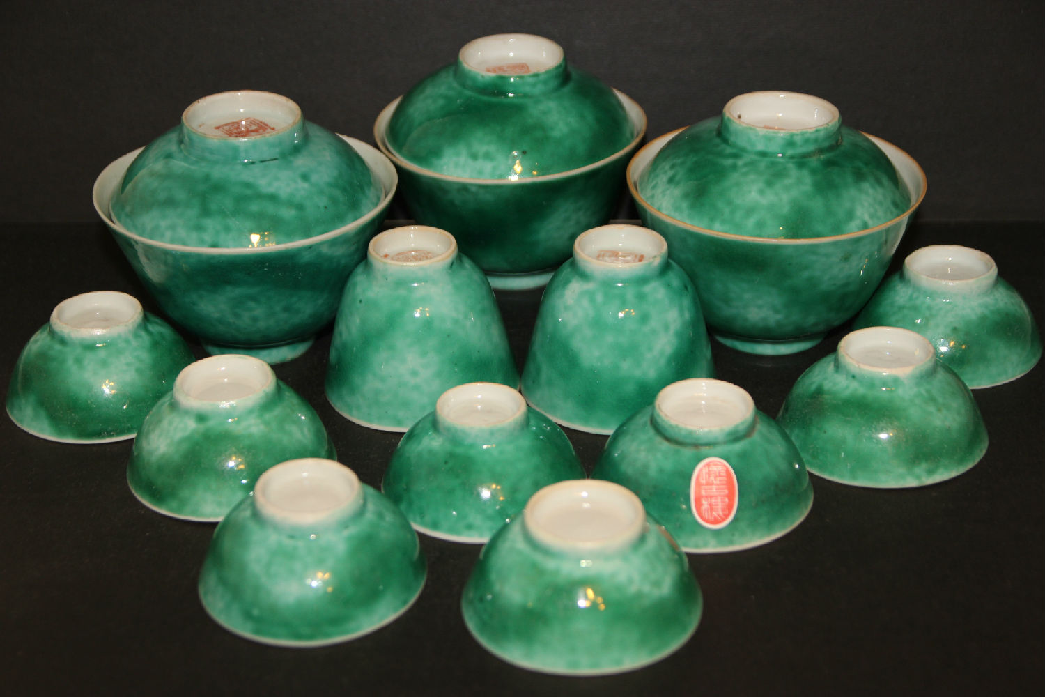 Green Famille-Rose covered bowls with 10 cups