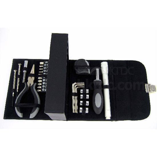 Comprehensive 24-piece tool set within a convenient PU travel case.