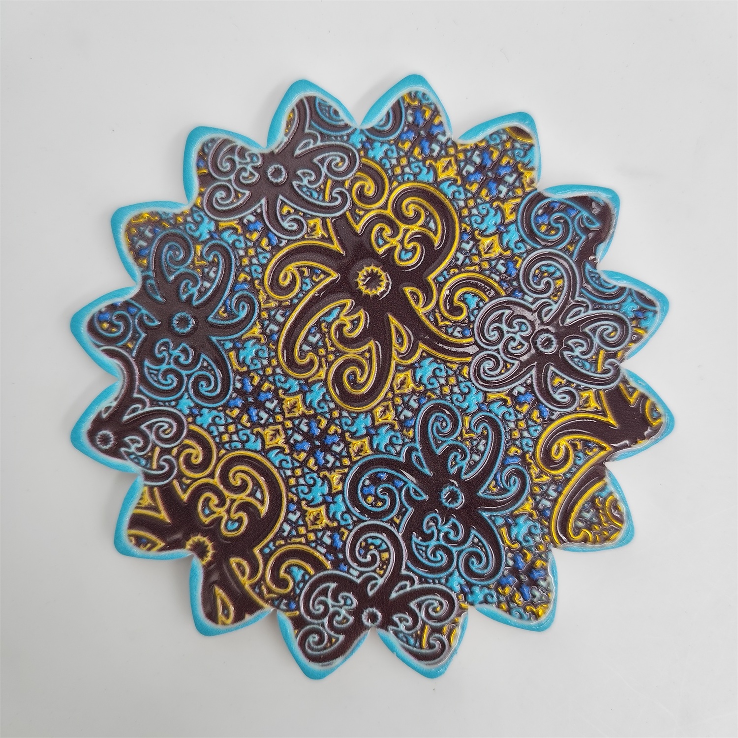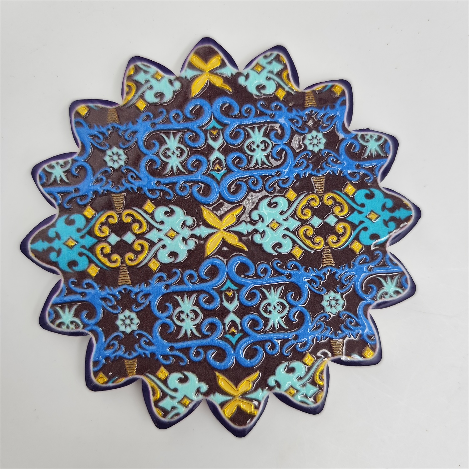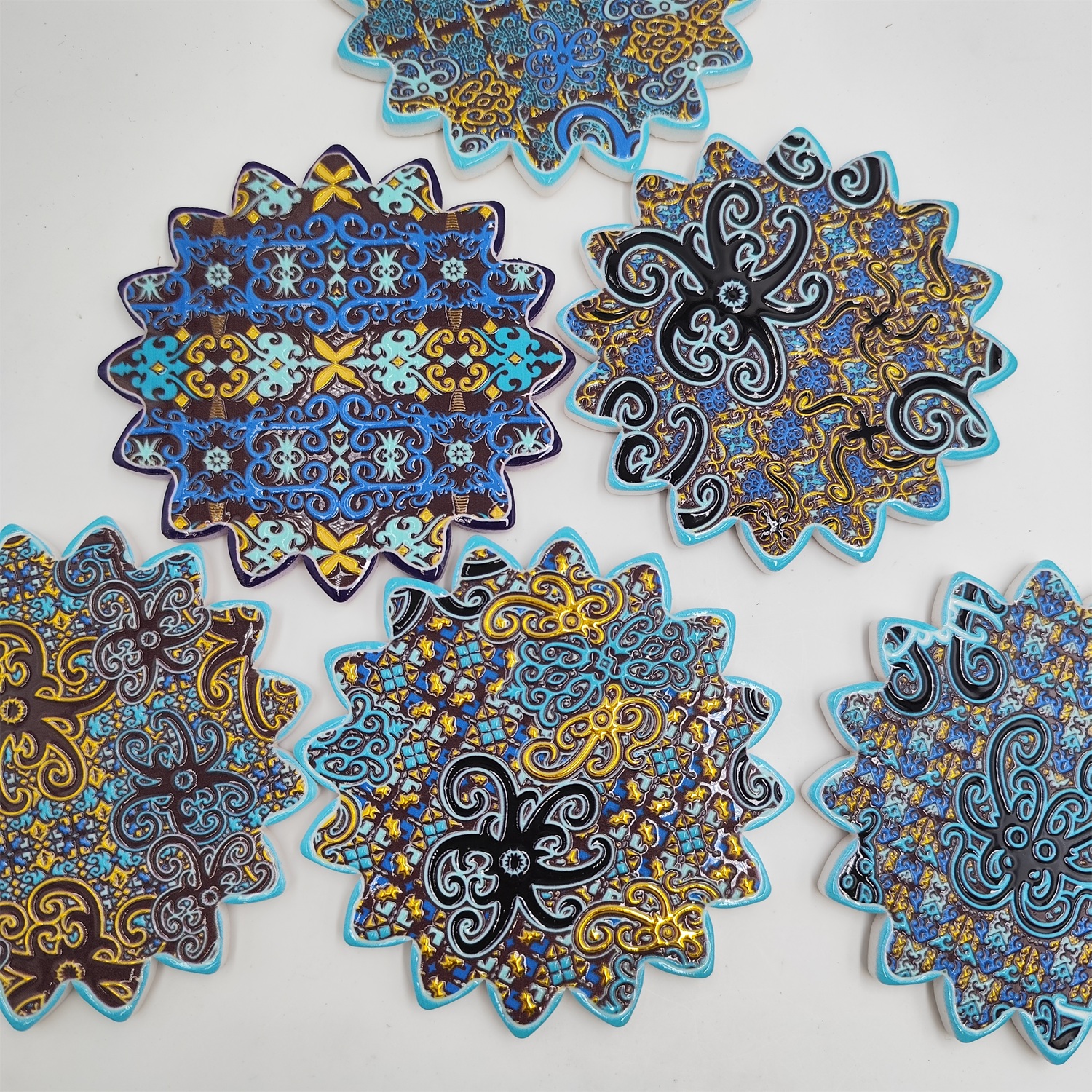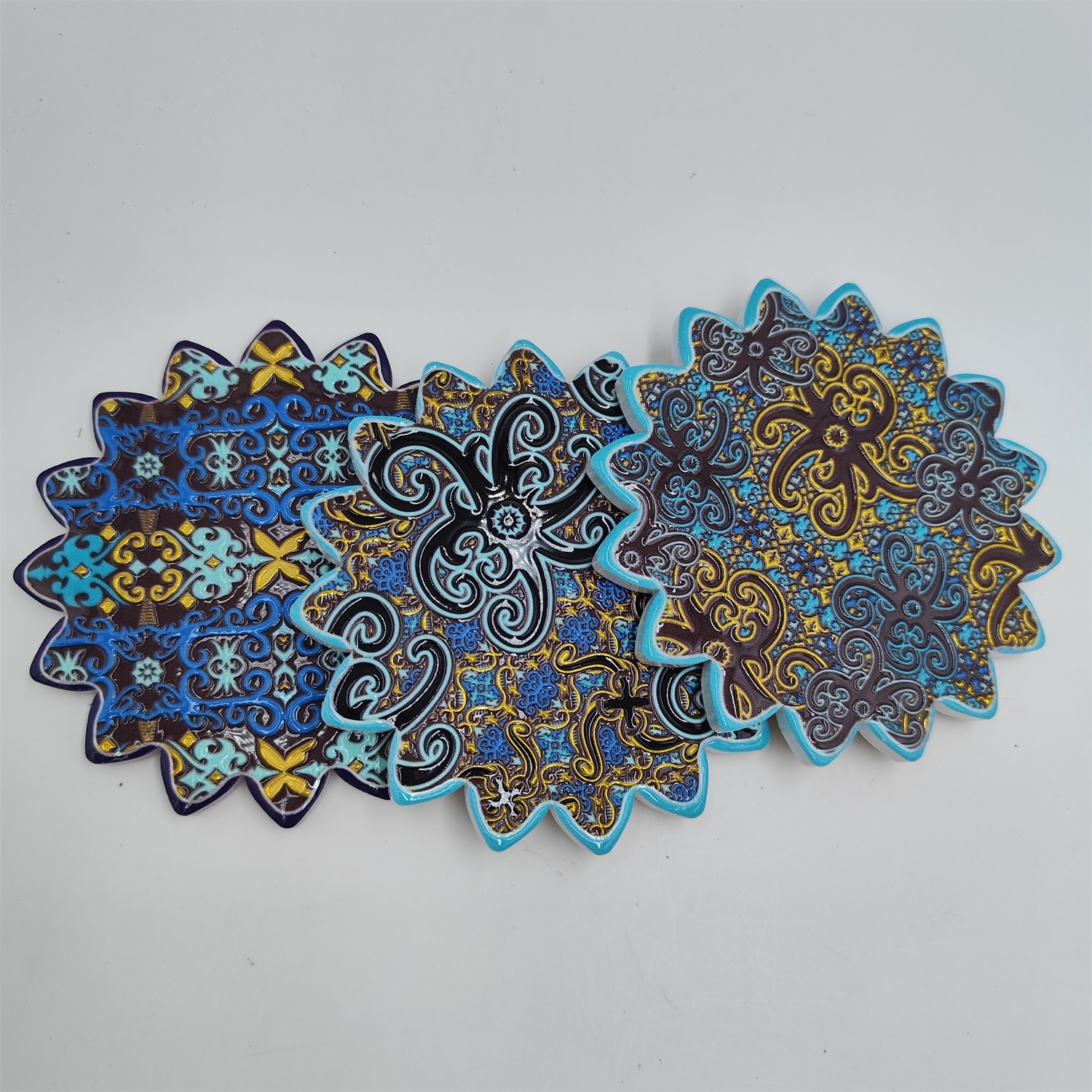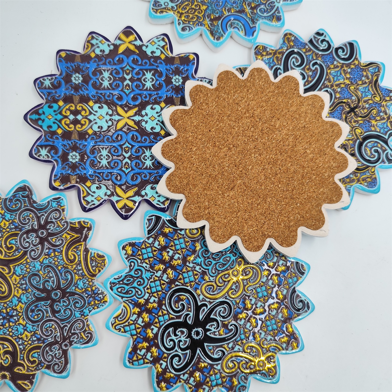 Top Seller Classic Custom Pattern Ceramic Coaster Set Blue Pattern Irregular Coaster with Cork Back Teapot Stand