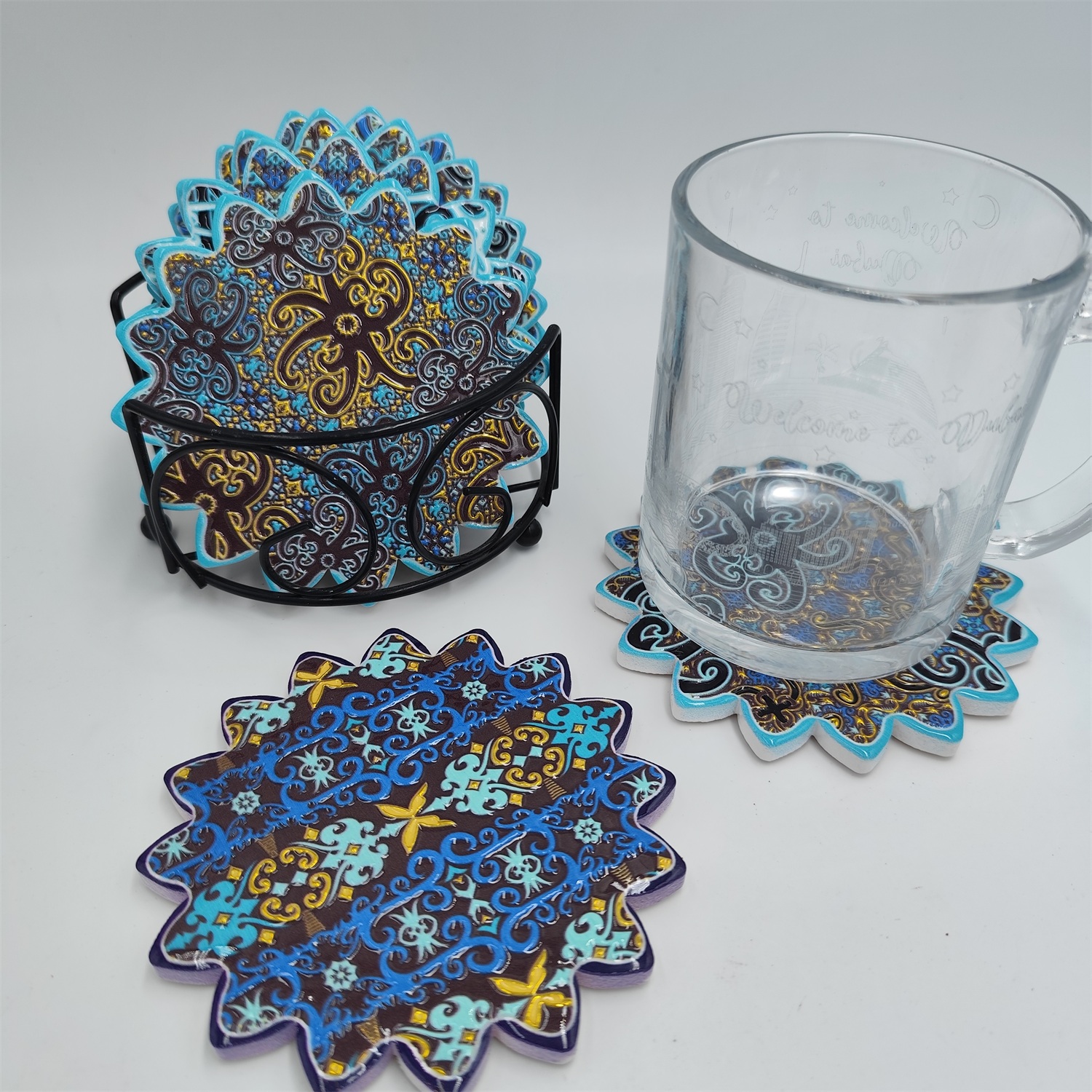 Non-Slip Cork Base: Each coaster is backed with a soft, natural cork layer that prevents sliding on smooth surfaces and protects delicate tabletops from scratches. The cork also absorbs minor moisture, keeping your surfaces dry.