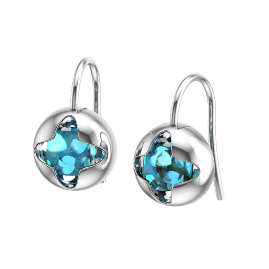 This pair of 18k white gold earrings features dome-shaped cabochons in a silvery color. The precious cabochons are decorated with blue London topaz stones in the shape of a 4-pronged star. It resembles the Pantheon in Rome, of which the interior is brightened by a beam of light from the top.
