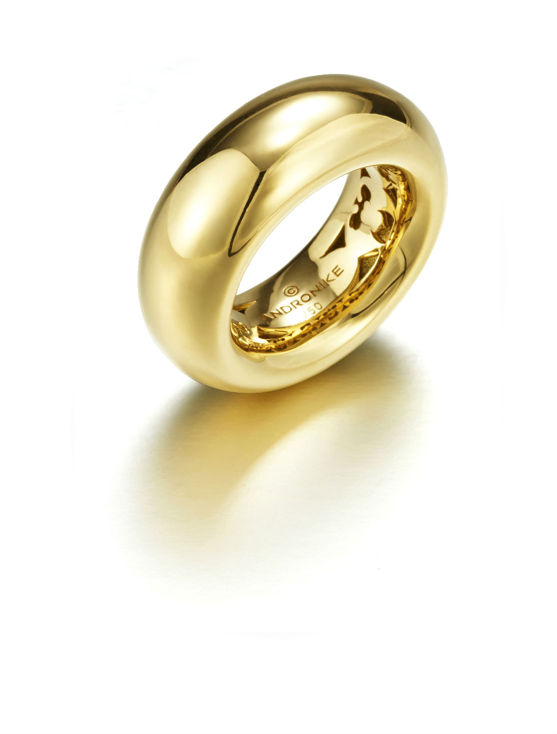 The Torus ring shown is handmade from filled 18k yellow gold. This design is also available in sterling silver, 14k and 18k yellow, white and rose gold, platinum.