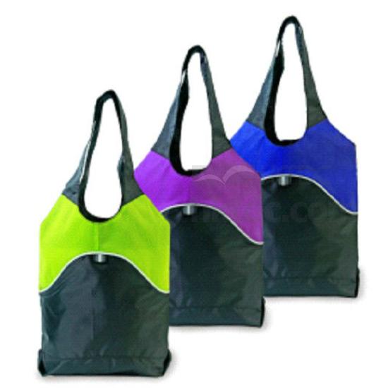 Sharp color bands highlight the curvy contour of these shopping totes to give these bags extra style. Designed to contain all your shopped items conveniently within its spacious top-opening compartment, the weight of the entire tote is reliable supported by its pair of form-fitting handles.