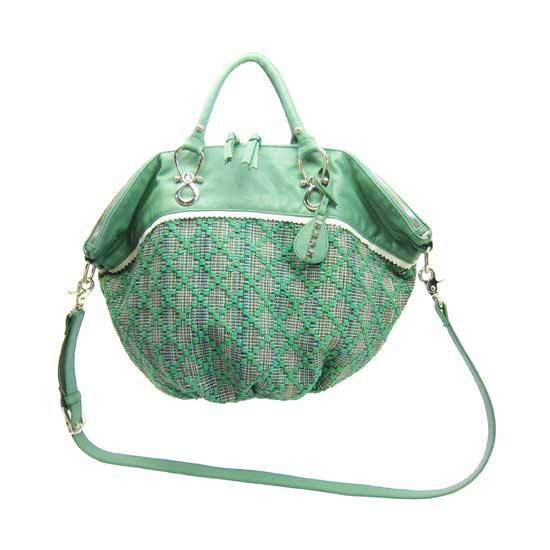 This green Lydia tote bag is designed with sturdy handles and an adjustable strap for added functionality. It features double inside zips, cellphone & multifunctional pockets, and a zip-top closure. The nice bag is adorned with green checked embellishments and a white line which is a nice complement to it.