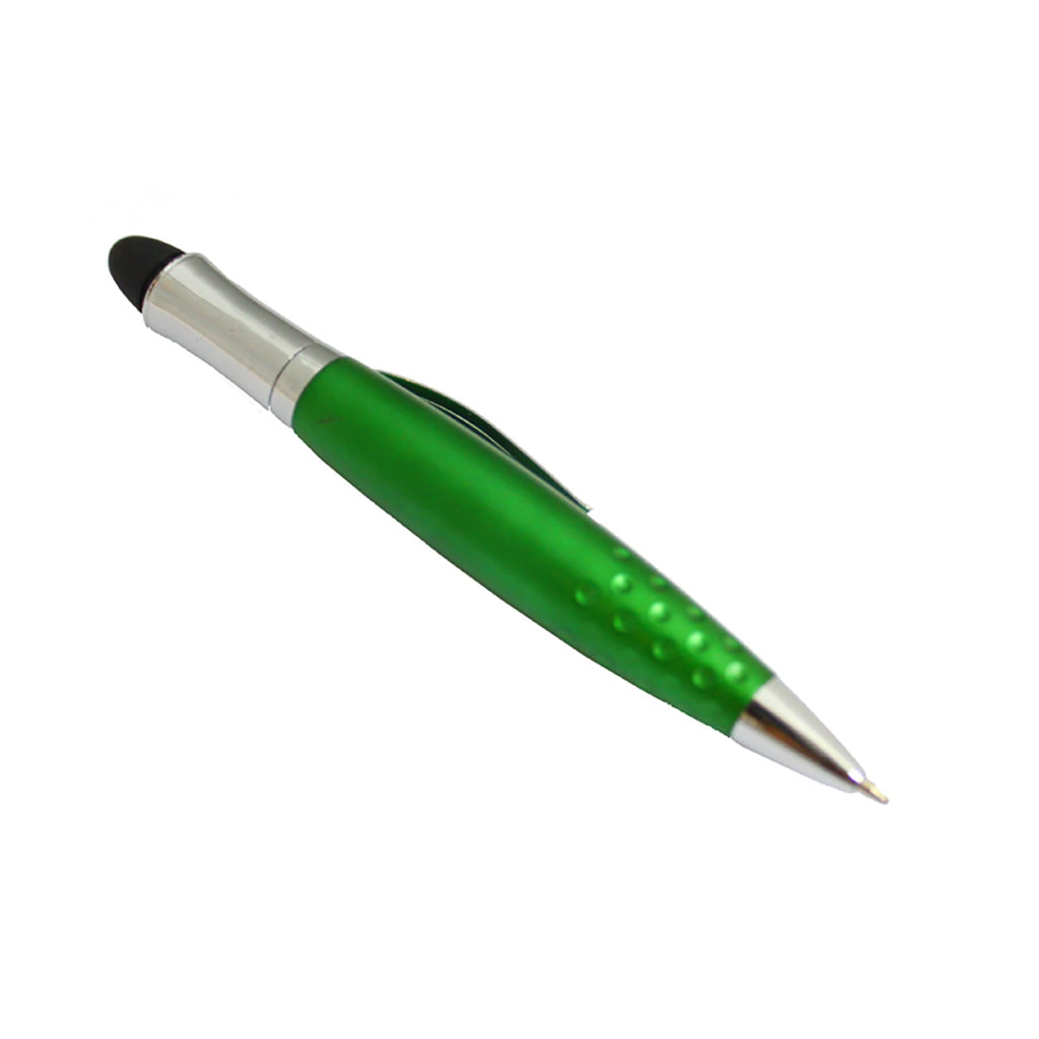 The displayed touchscreen stylus ball pen is made of plastic and has a writing tip and a rubber tip on both ends. It offers a comfortable grip and has a pen clip for attaching to pockets. This versatile and convenient touchscreen stylus ball pen is excellent for iPhones, iPads, and other mobile devices.