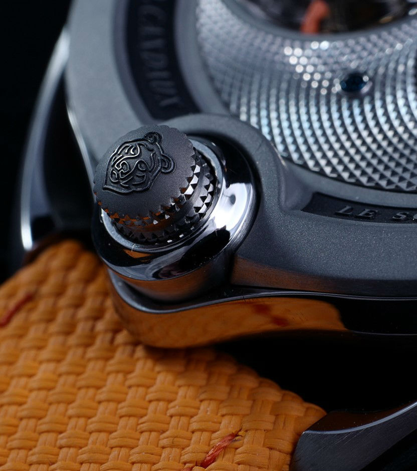 The Magic Crown - 31 Components, double patented system In order to preserve the harmonious design, there is no visible crown. The Magic Crown is protected from shocks and gives extra wearing comfort