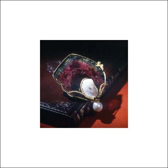 Collaboration of a big red uncut tourmaline and a horse casmeo