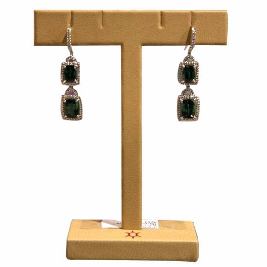 18K white gold drop earrings with green tourmalines and diamonds.