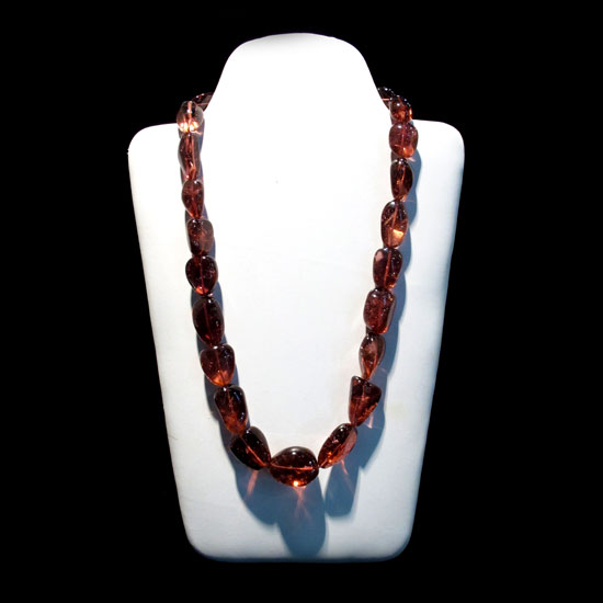 This tourmaline necklace is crafted with crystalline gemstones in various shapes and sizes. It exhibits a graceful and subtle wine red color that enchants onlookers. This simplistic piece of jewelry is an effortless and sophisticated addition to your evening gown.