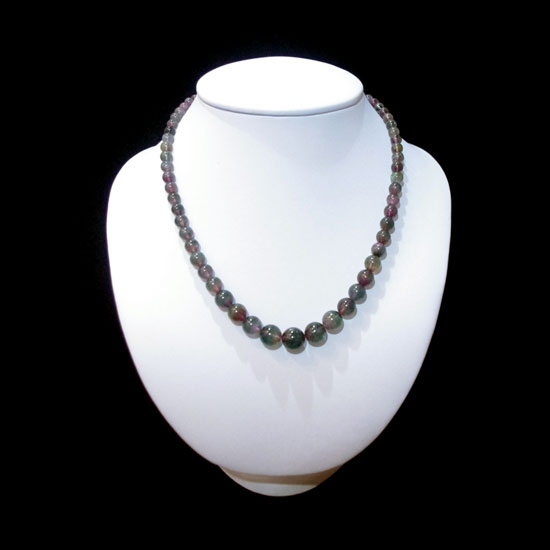 This is a necklace made from tourmaline beads. The tourmaline beads are well polished to offer superior roundness. Spice up your elegant outfit with this beautiful necklace.