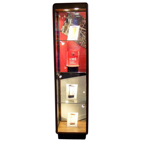 This display tower features four to five shelves for displaying products. The door of the whole tower, from top to bottom, is made of toughened glass, in order to allow customers to see the jewellery carefully, while ensuring the safety of the products. The door is lockable, making it even safer for the jewellery.