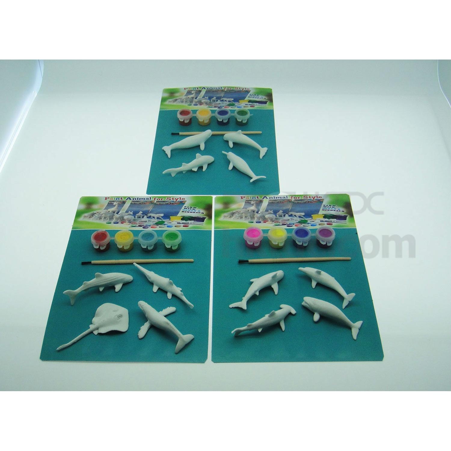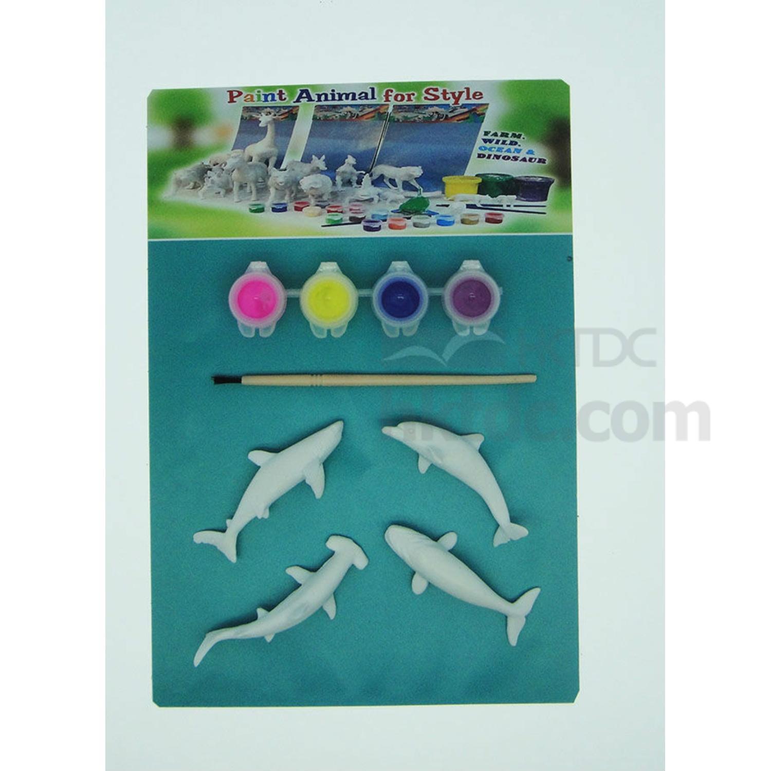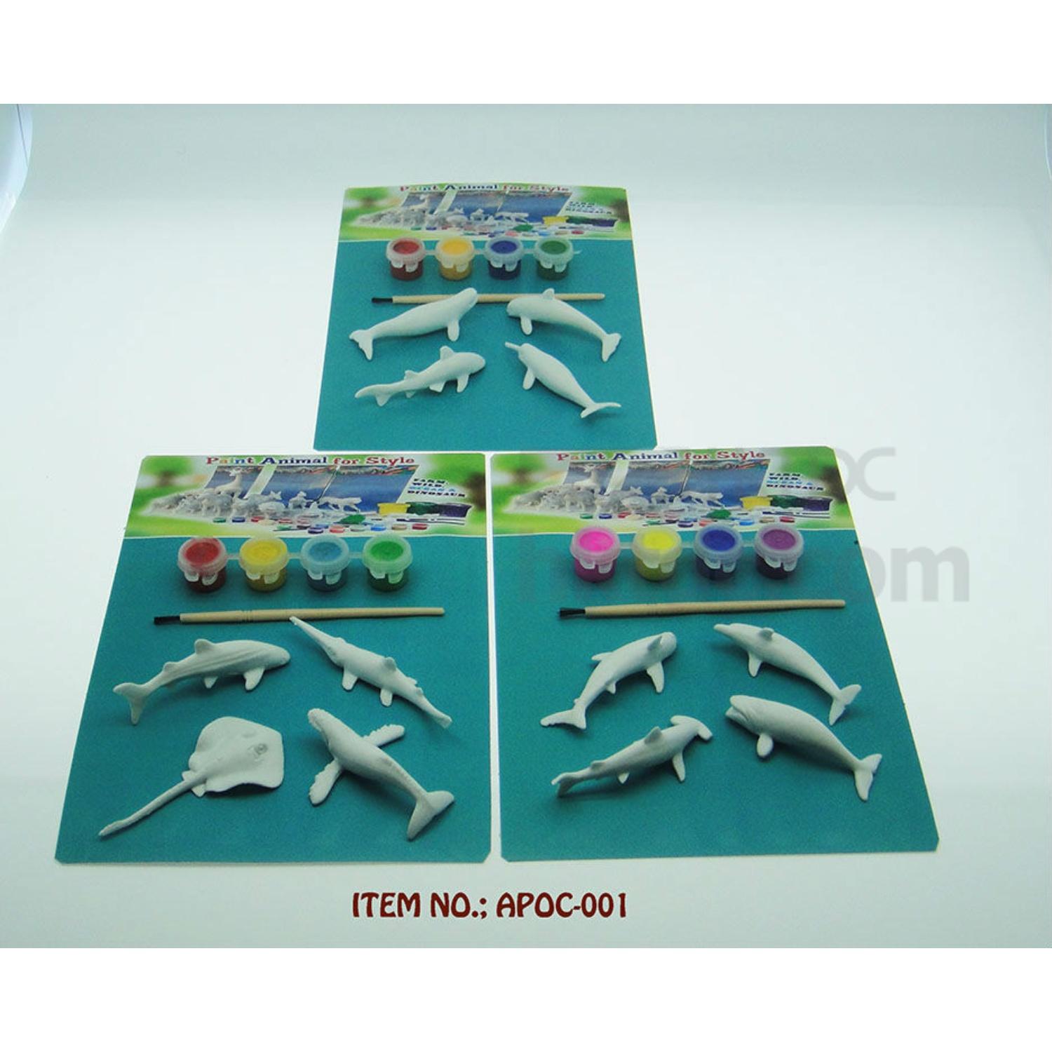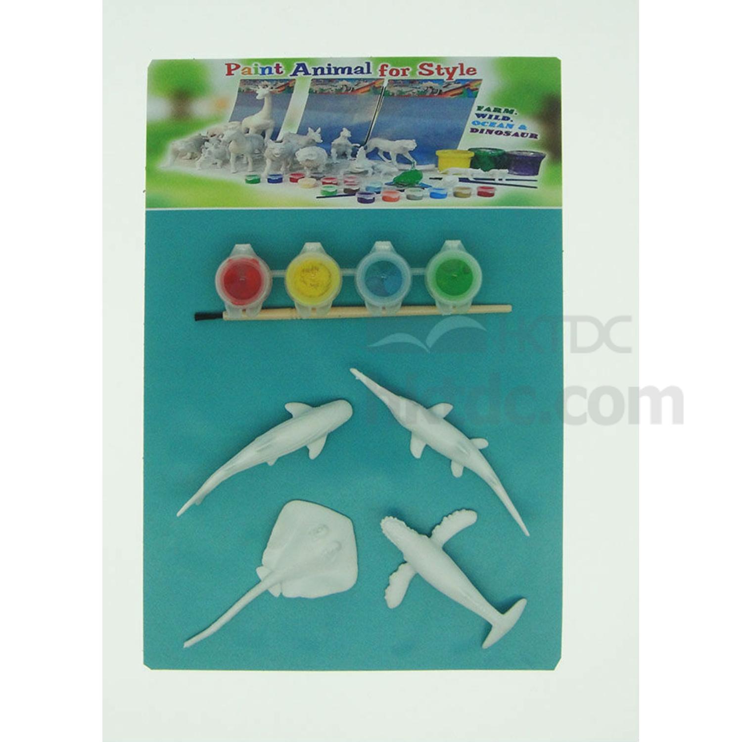4pcs ocean white color animal, 4 paint color (red, yellow, green, blue) with 1 pc blush on blister card