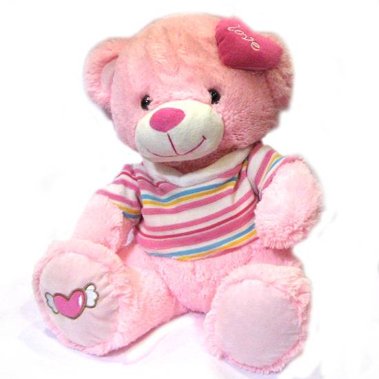 As shown is a toy bear which is best for gift for kids aged 3 or above. This toy bear is also best for kids to play alone, with friends or parents. A heart-like cushion is there to beautify the toy bear.