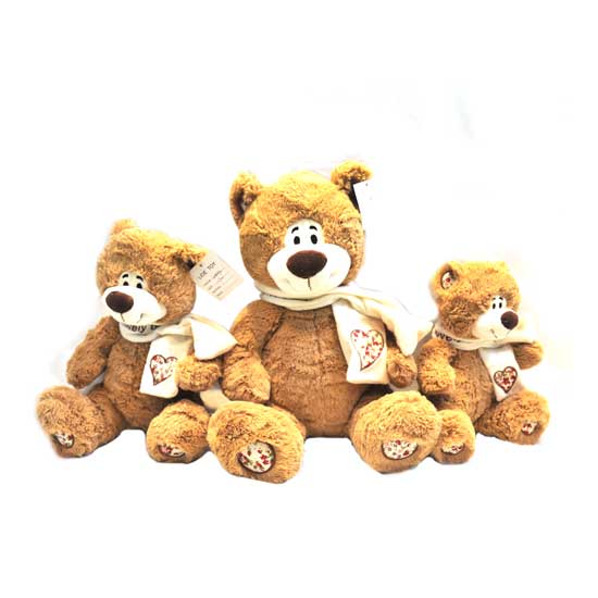 This toy bear set includes three adorable bears in small, medium and big sizes. These cute toy bears are covered with long and soft plush. The soft toy bears are great cuddly friends for your children.