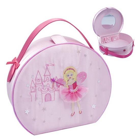This toy beauty box is in pale pink colour with a deep pink handle.