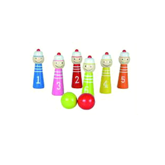 This toy bowling set consists of two balls and six wooden pins. The pins are shaped and decorated to look like little human figures for incredible cuteness. Featuring a colorful design, this bowling set will make children incredibly happy.