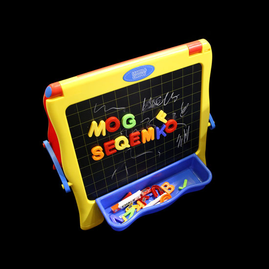 This is a toy easel that comes with a double-sided design. Made of plastic, this toy easel can be used for writing and learning the alphabet. This fun toy is suitable for small children above 3 years old.