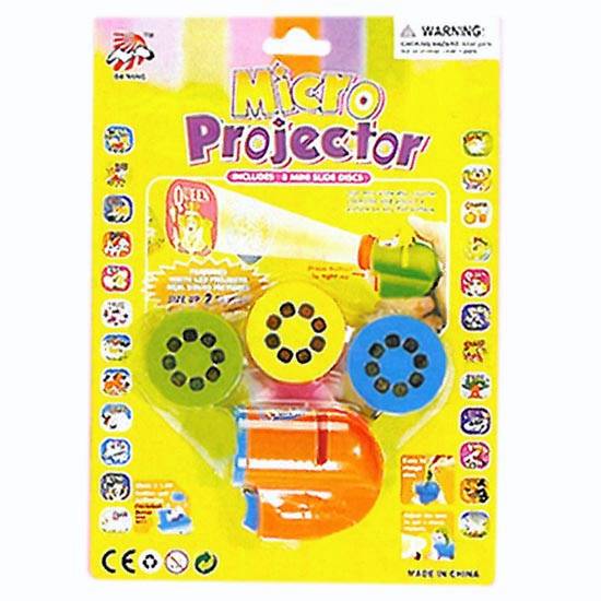These toy film projectors resemble real-life projectors. They give out light and project images of the film cards. This toy film projector set comes with three projectors and three film cards.